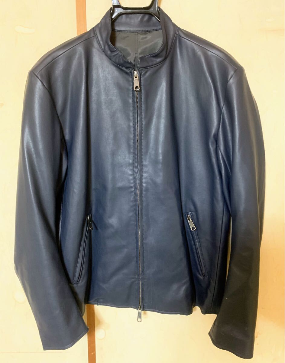 SHIPS シングルライダースジャケット(合成皮革) サイズM ネイビー 検索:シップス/ZOZO TOWN/フェイクレザー