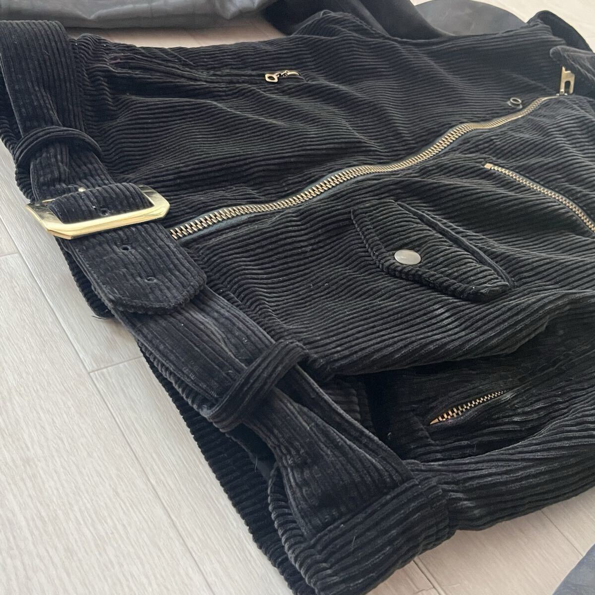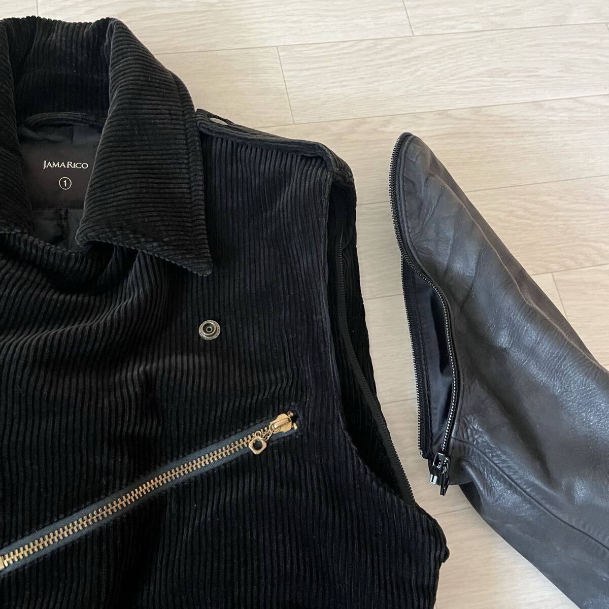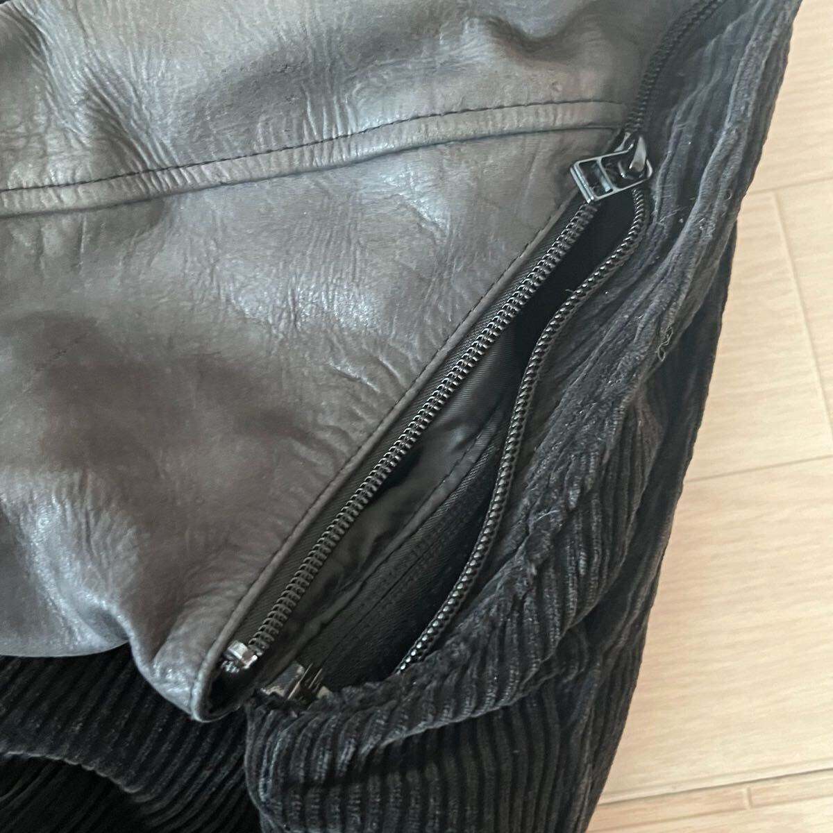 身頃には太畝のコーディロイを使用し、フロントとポケットにはゴールドのジッパーでアクセントをきかせています。