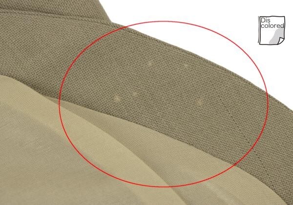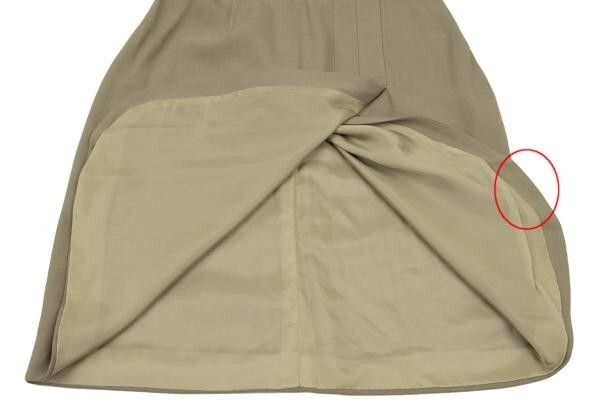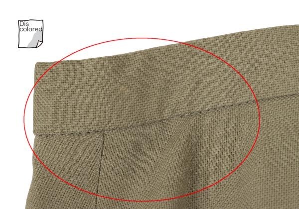 | コンディション | ウエストに引っ掛け、後ろにシミ、裾裏・後ろに変色があります(写真参照)。 その他目立ったシミ、汚れ、ほつれ等なくいい状態です。クリーニング済み。 ※商品の詳細写真はこちらよりご確認頂けます。 |