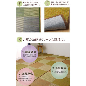 | 素材・材質 | 表地:い草※普通織 裏地:ポリエステル100%(不織布) ヘリ:ポリエステル100% |