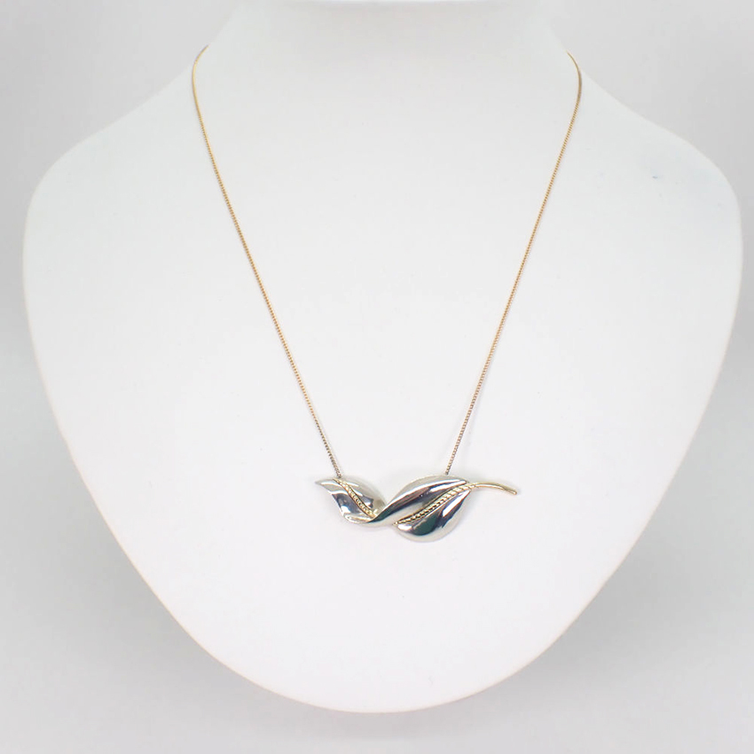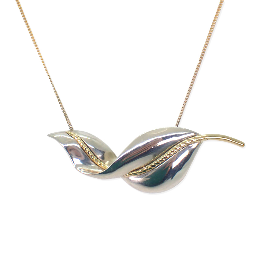 1990年代のヴィンテージ感あふれる美しいネックレスです。上品なコンビのリーフモチーフは横が5cm弱あり、ティファニーの良き時代の存在感を放ちます。