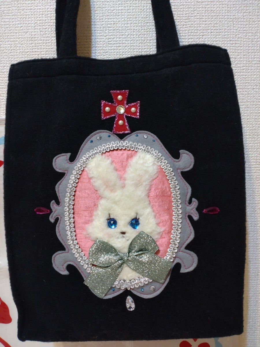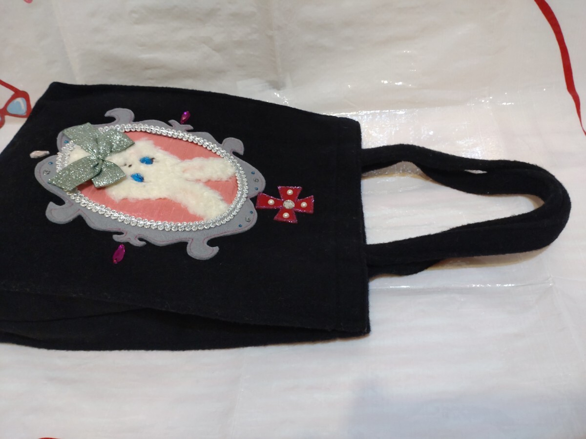 シャーリーテンプルのプリンセスラビットのバッグです。毛混のフェルト生地で最初から毛羽立ったような素材です。底の部分に保管時にたたみグセ?が付いてしまいましたが、
