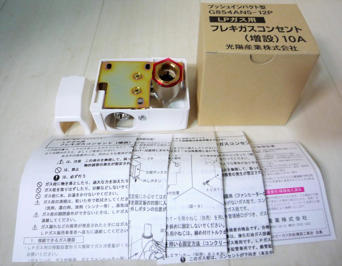 ☆ 光陽産業 G854AN5-12P プッシュインパクト型 LPガス用 フレキガスコンセント増設 10A◆3方向接続3,191円