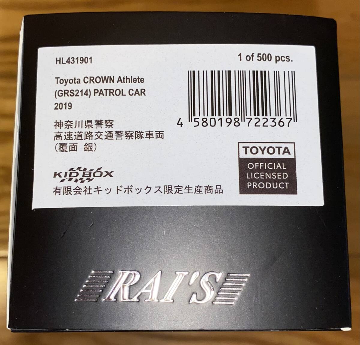 レイズ ヒコセブン 1/43 神奈川県警察高速道路交通警察隊車両 トヨタ クラウン アスリート (GRS214)2019 (覆面 銀) HL431901