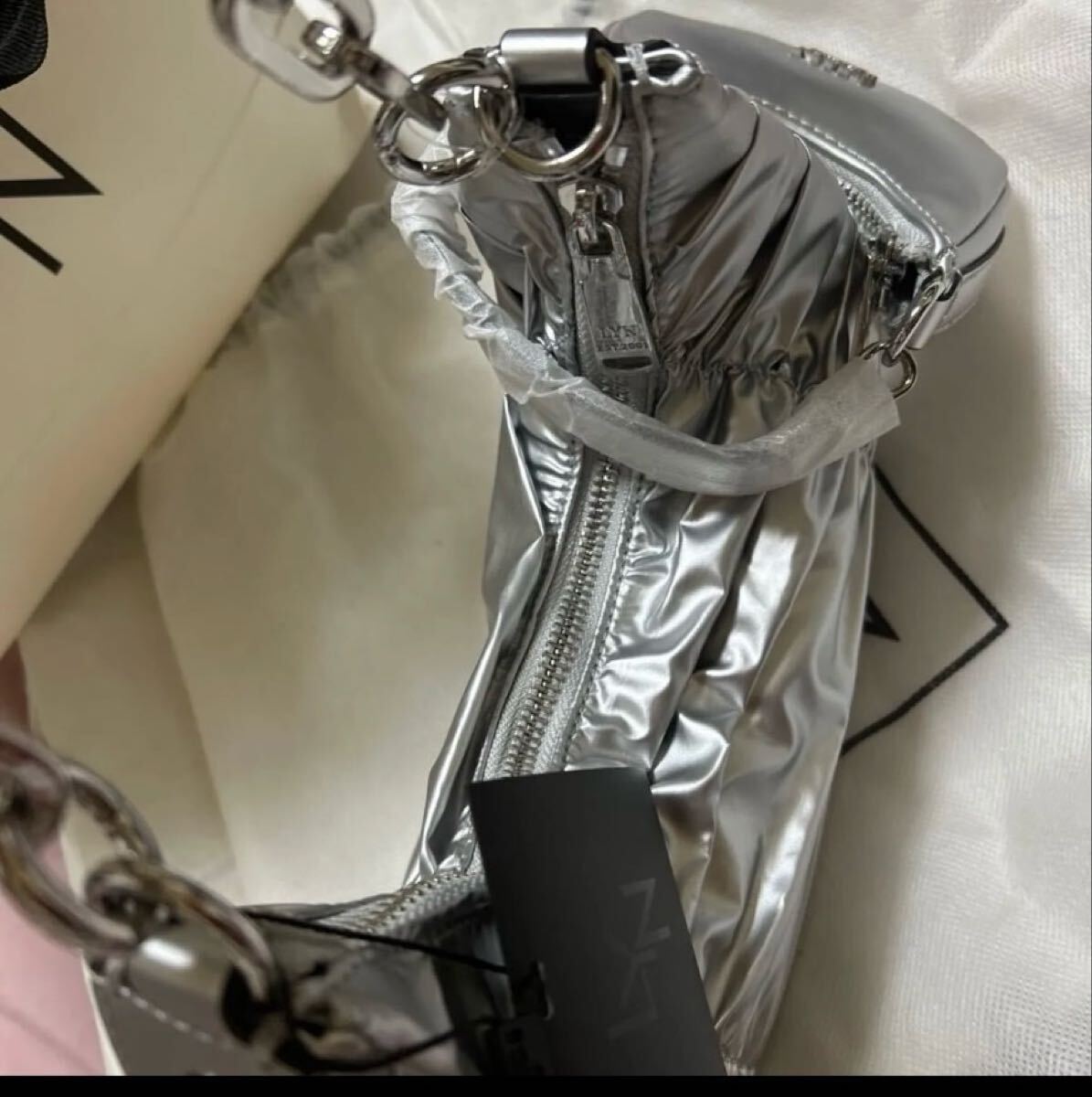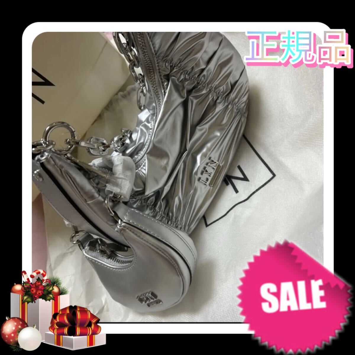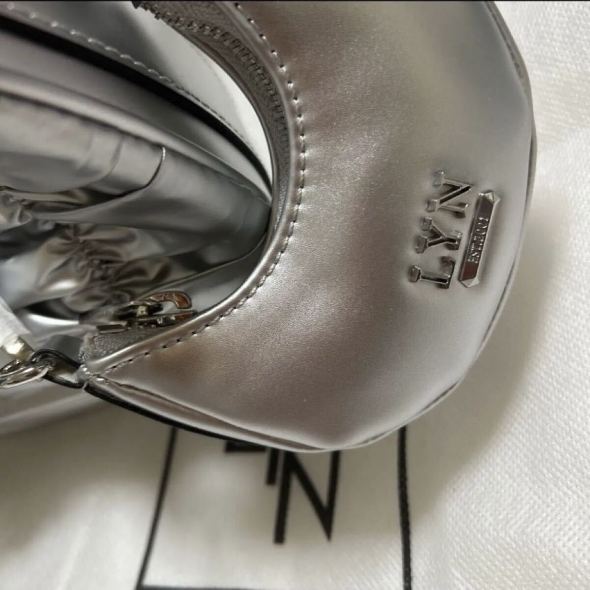 上品な光沢感が美しいLYNのギャザーショルダーバッグです。