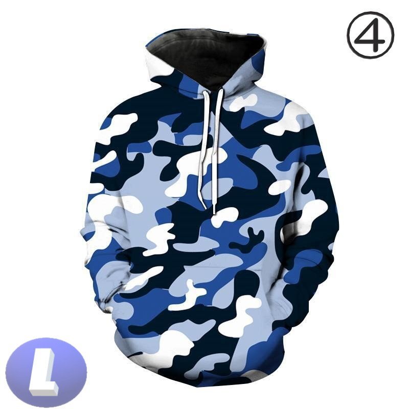フード付き 迷彩パーカー カモフラ ブルー L トレーナー アウター 防寒 n720