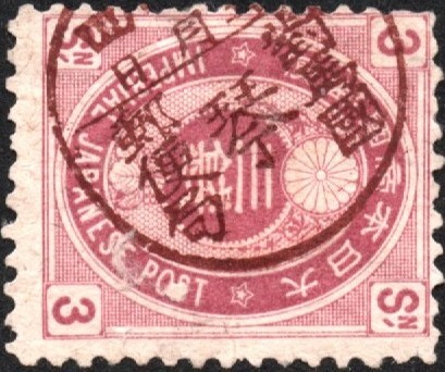 ○新小判3銭・縦書丸一印 對馬國/琴  (郵便局・年ⅢK1) 褐色印  ※対馬・上県郡