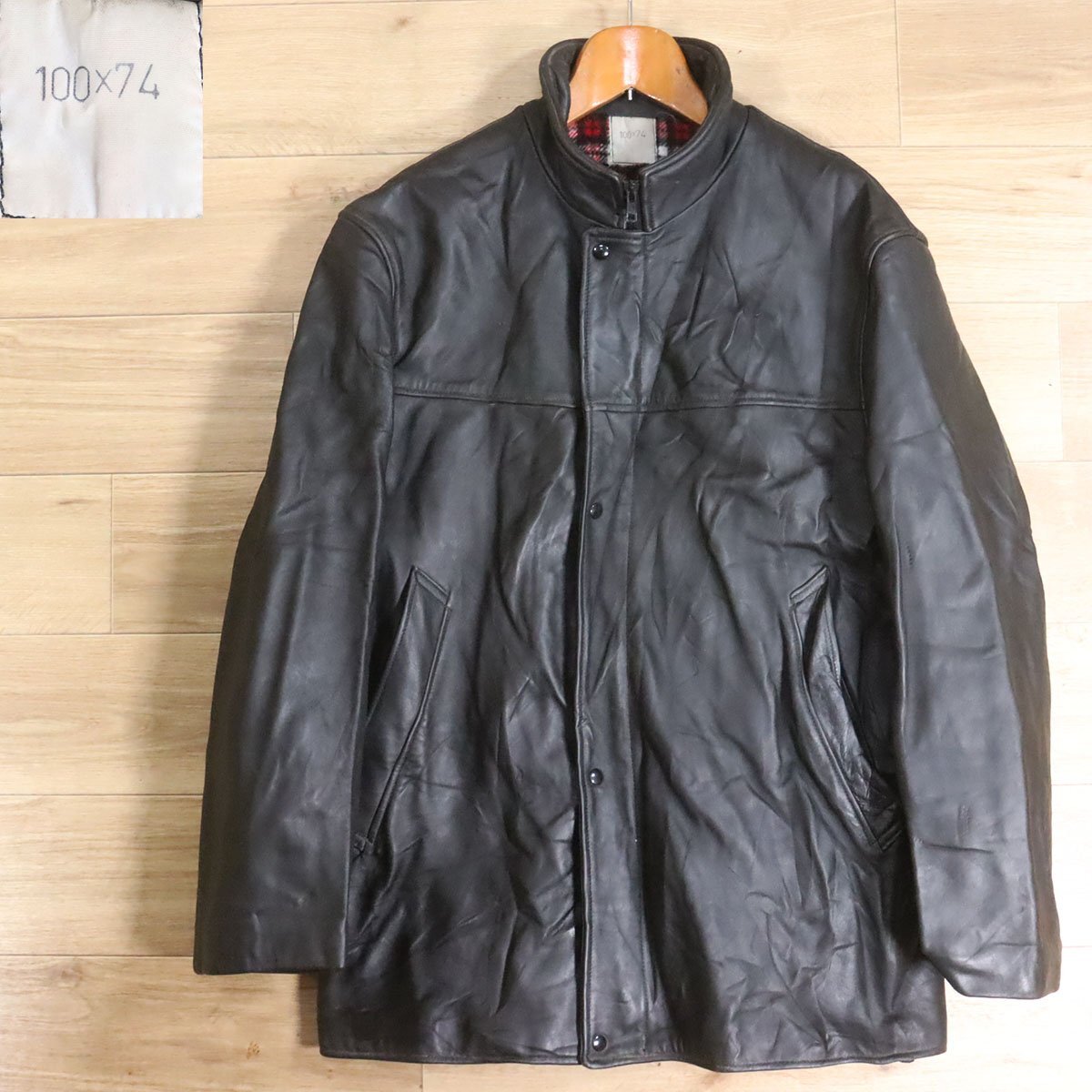 &6O/Y6.13-8 70s~ ユーロ古着 レザーカーコート 裏チェック 本革 革コート 皮コート レザーコート レザージャケット 100×75
