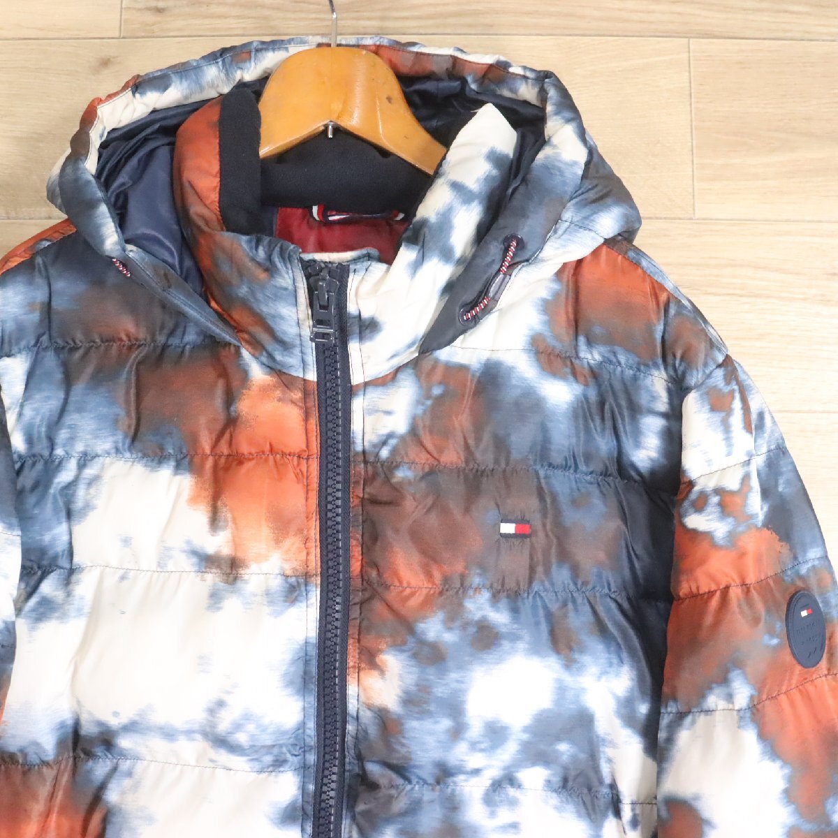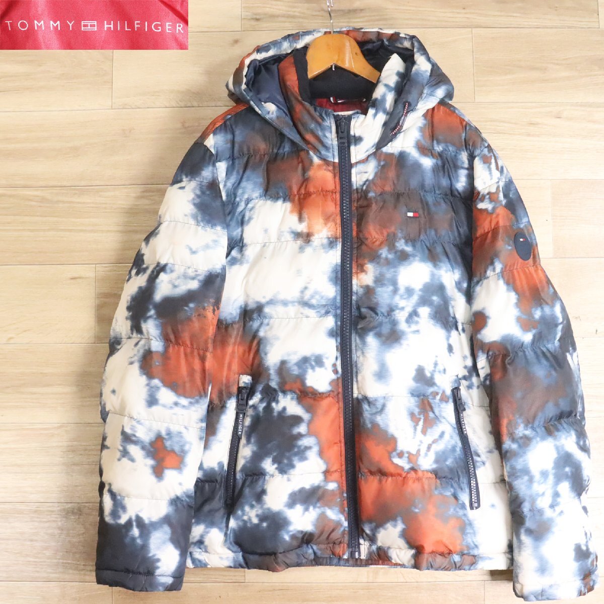 $1T/Y6.5-10 アメリカ古着 TOMMY HILFIGER トミーヒルフィガー フード付き パファージャケット L パディングジャケット 中綿