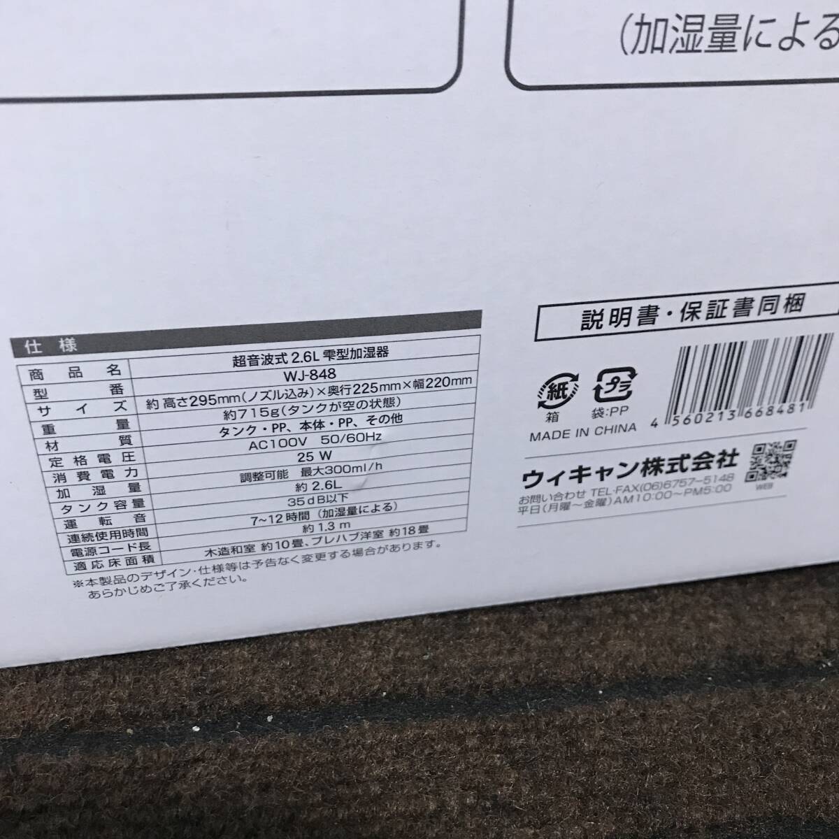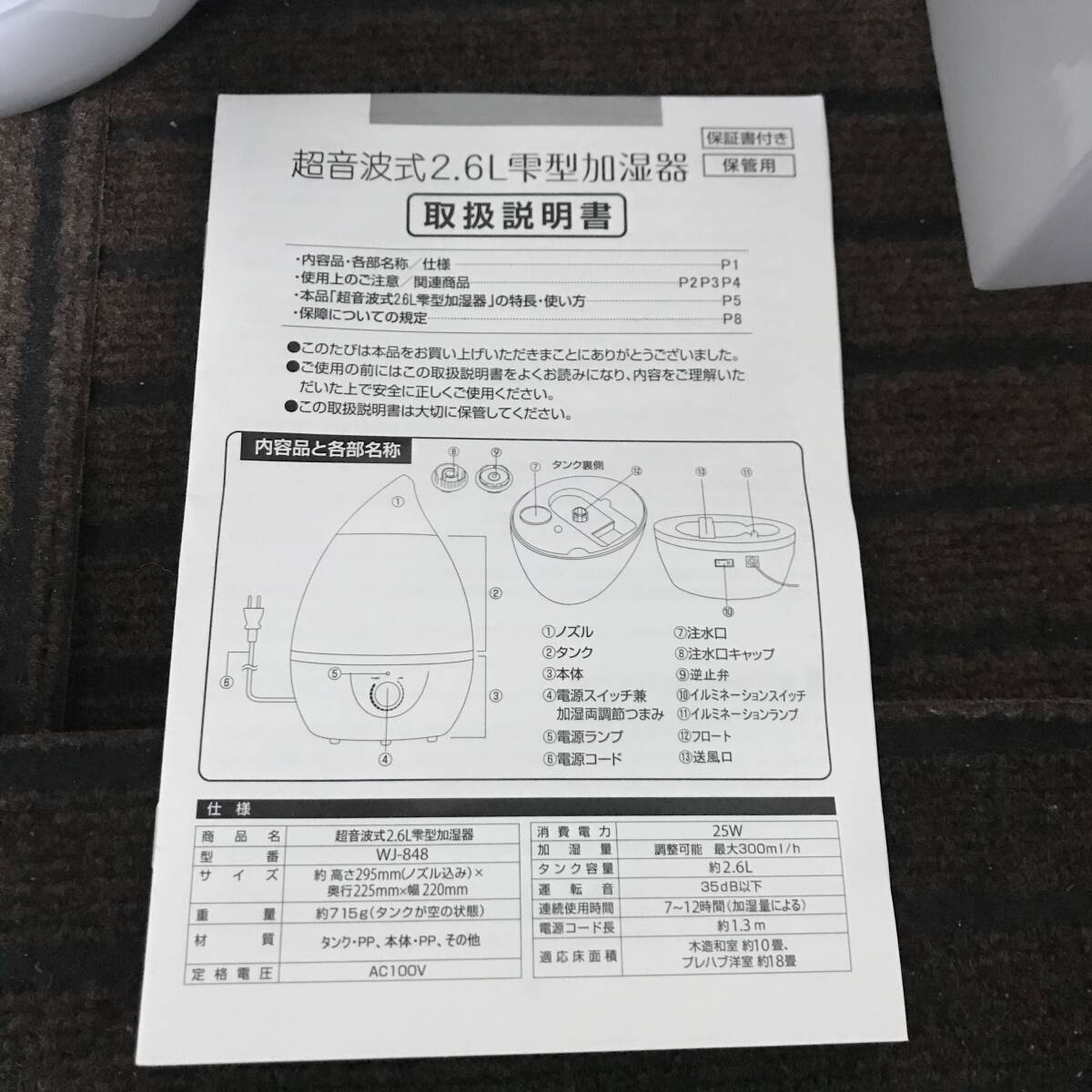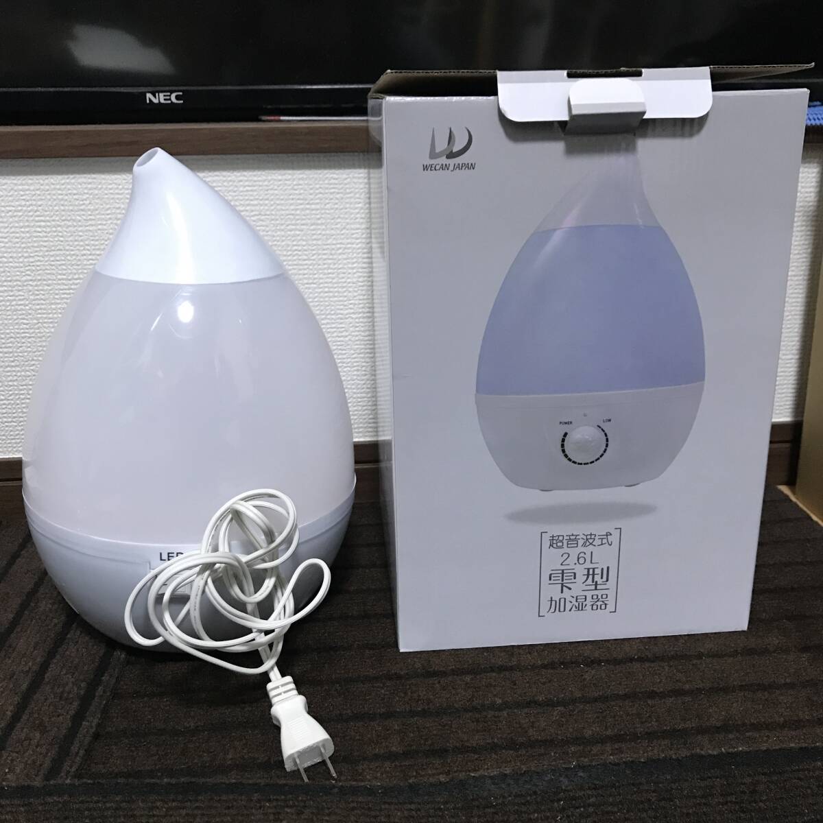 【クリーニング済み】LEDライト付き 超音波式 加湿器 2.6L 雫型 WJ-848 洋室18畳 和室10畳 B
