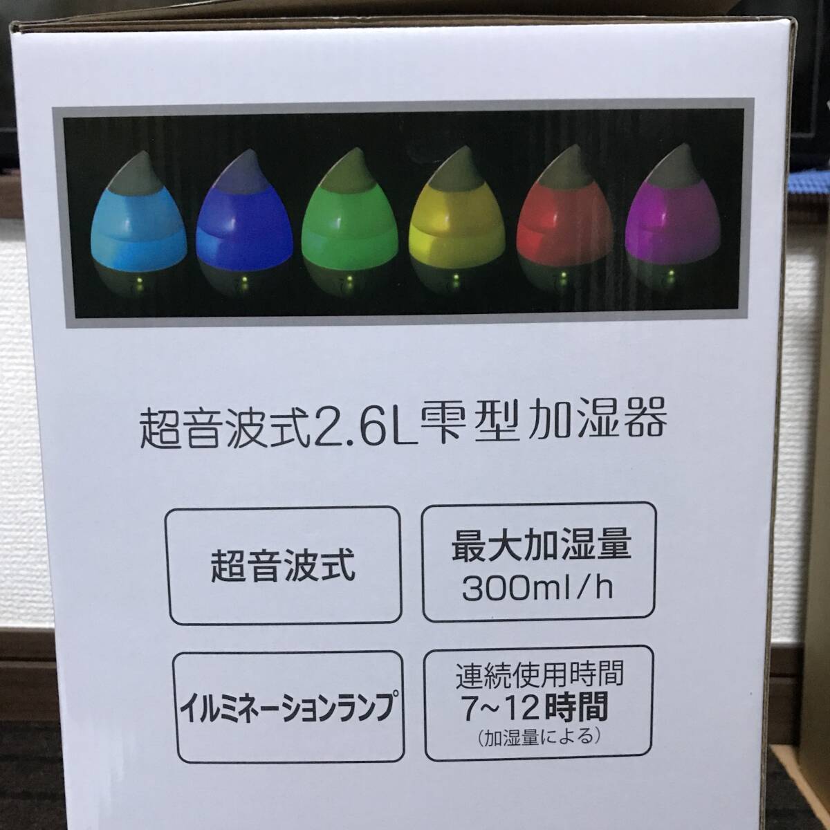 LEDライト付き 超音波式 加湿器 2.6L 雫型 WJ-848 洋室18畳 和室10畳