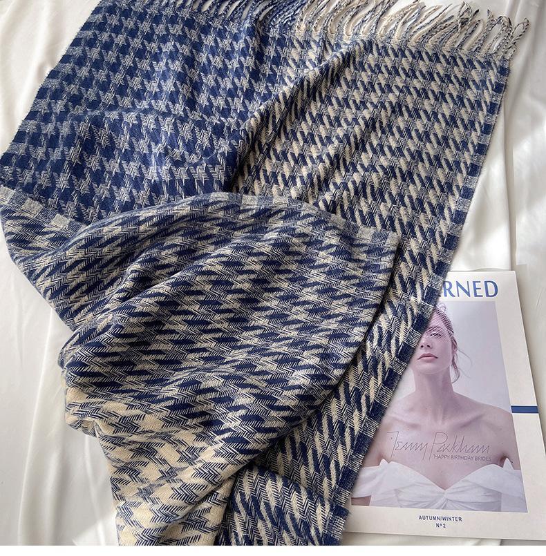 【DQ-55】新品 レディース 秋冬大判 ストール膝掛け 冷房対策ショール マフラー ブルー