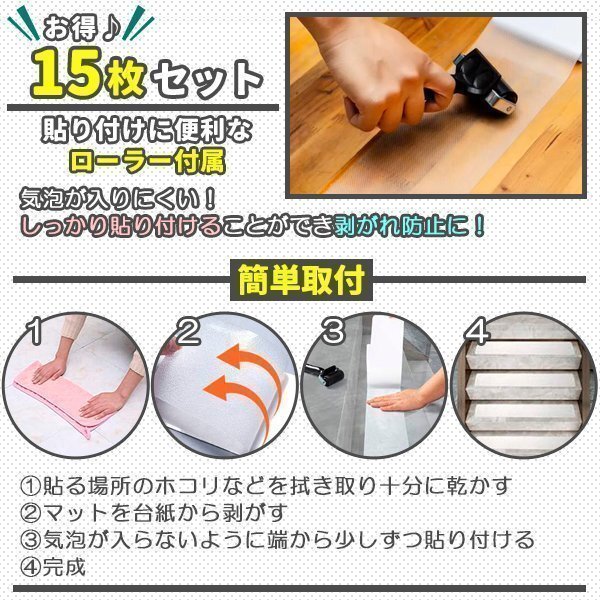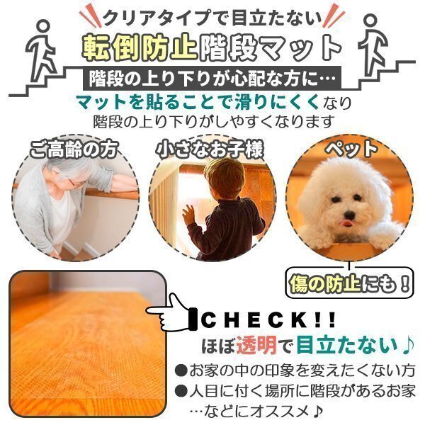 階段マット 滑り止め クリア 70x10cm 15枚組 幅70cm 転倒防止 キズ防止 ペット ケガ防止に 室内用 吸着 階段用 滑り止め すべり止め