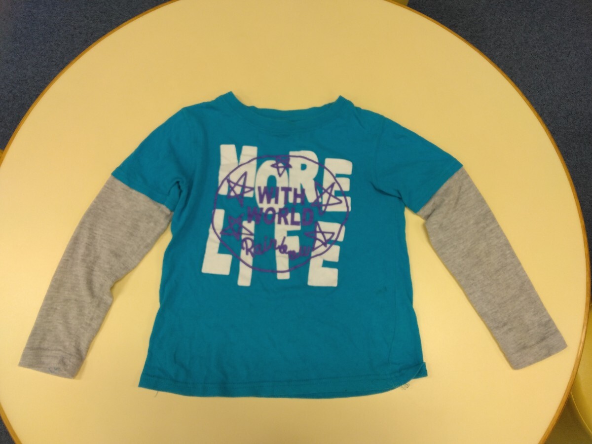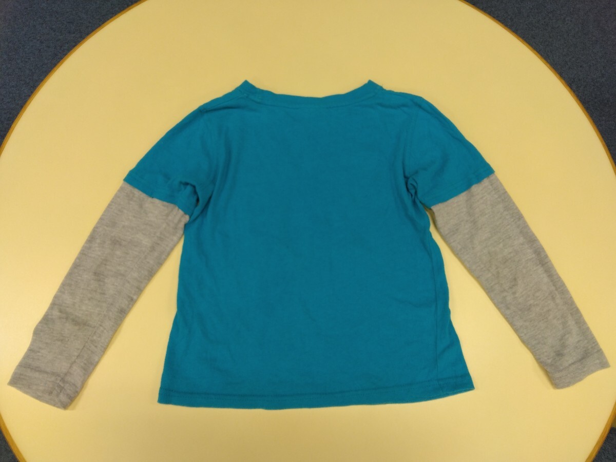 GOLD EXPERIENCE長袖プリントTシャツ130cmライトブルー重ね着風グレー綿コットン男の子カットソー男女兼用キッズ子供服スター星