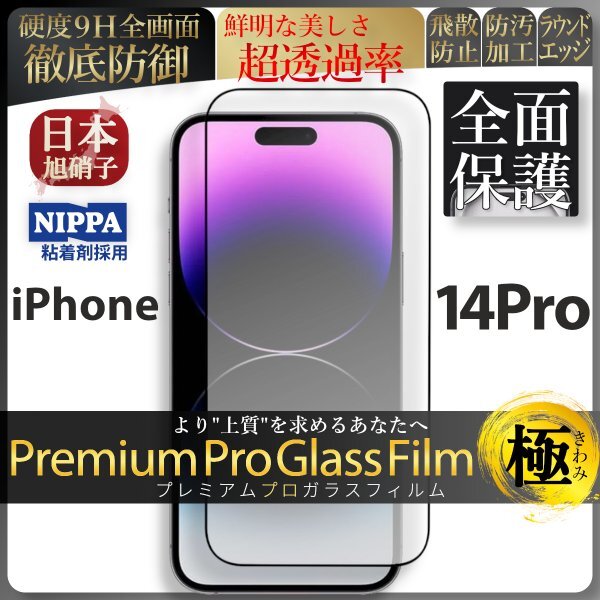 iPhone 14 Pro 全面保護 強化ガラスフィルム 旭硝子 自動吸着 99%透過 保護フィルム 液晶保護フィルム