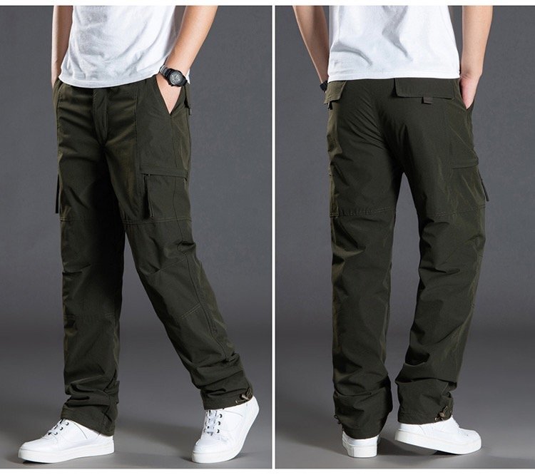 メンズカーゴパンツ ワイドパンツ 長ズボン ワークパンツ ロングパンツ カジュアル ボトムス 綿 3XLサイズ ミリタリーグリーン 裏起毛