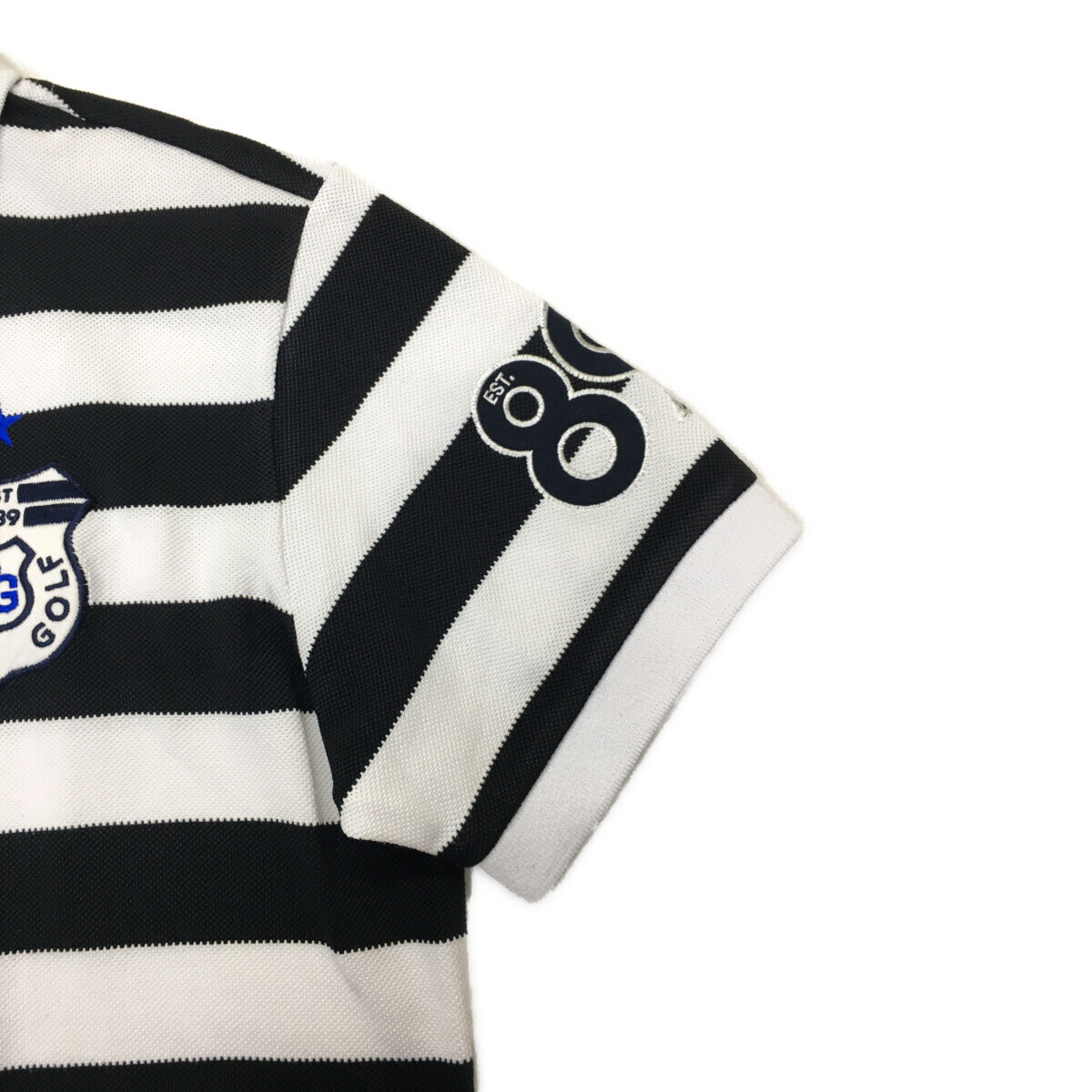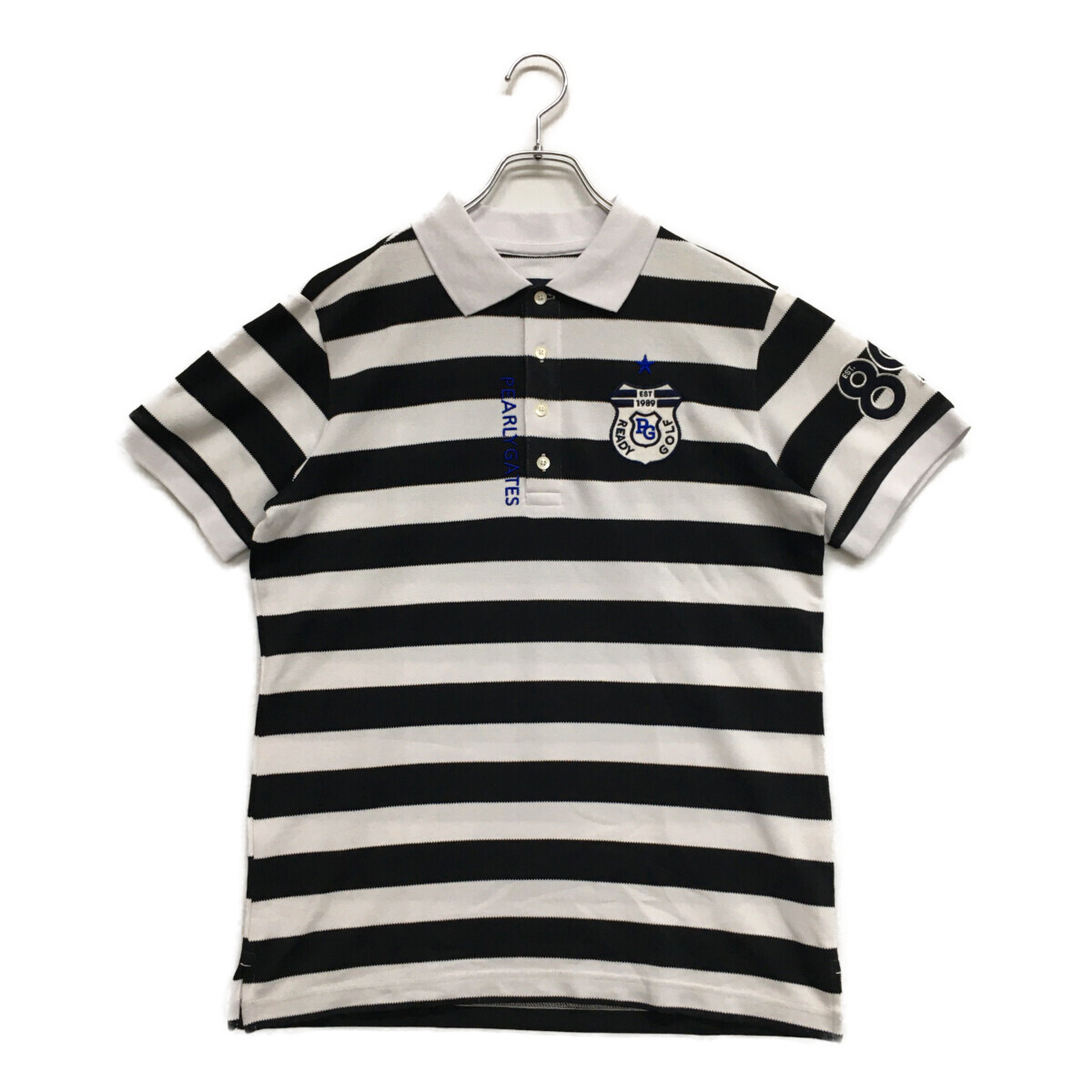 coco 中古【値下げ】 パーリーゲイツ メンズ 半袖ポロシャツ 5(L) 黒×白 ブラック×ホワイト ボーダー レターパックプラス発送可 119012