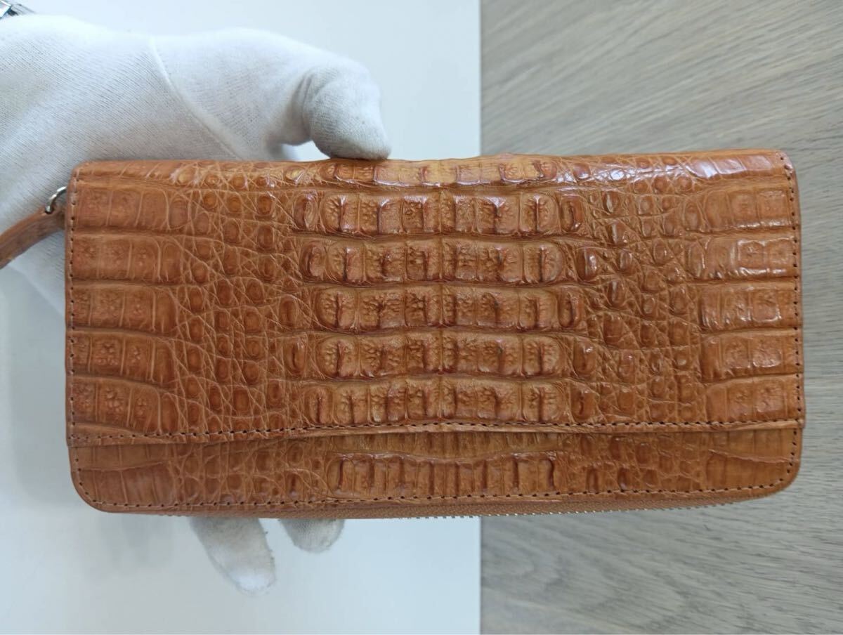 クロコダイル レザー ラウンドジップ 長財布 茶ブラウン 小銭入れ付き ファッション小物 財布 箱付き 現状品