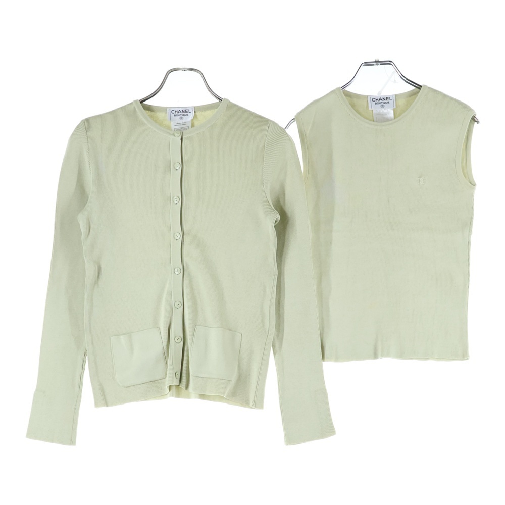 シャネル 98C クルーズコレクション ココマーク刺繍 ノースリーブ クルーネック ニット ロングスリーブ カーディガン P10154V00428