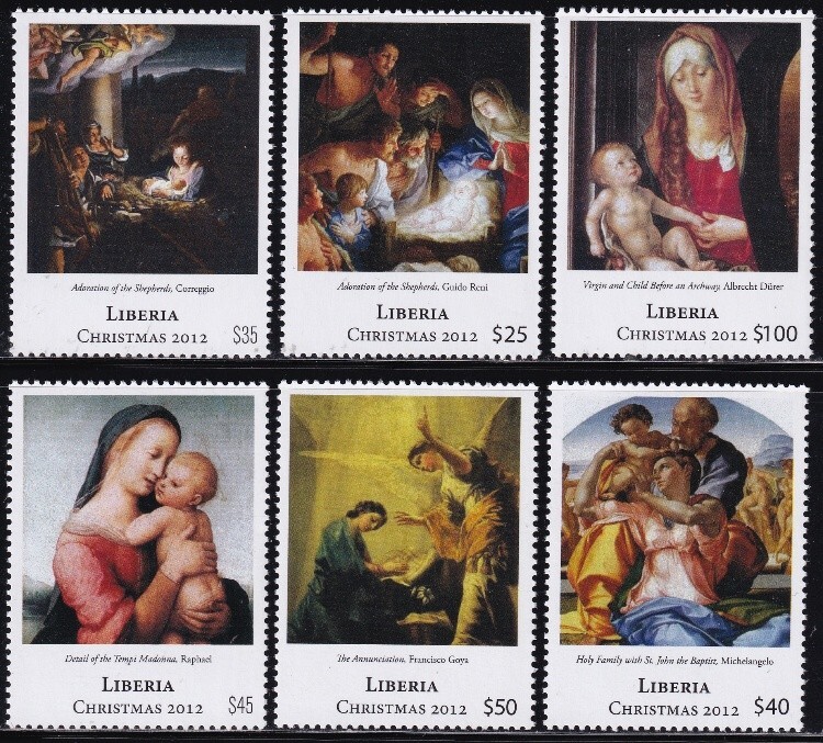 ak7204 リベリア 2012 クリスマス 名画 #2830-5