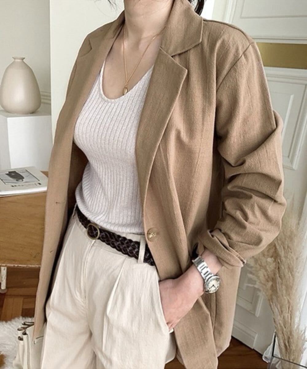 ●リネン混素材で春から夏にかけて、カジュアルな着こなしで、大人のキレイめコーデにオススメ!サッと羽織るだけで洗練された装いに。