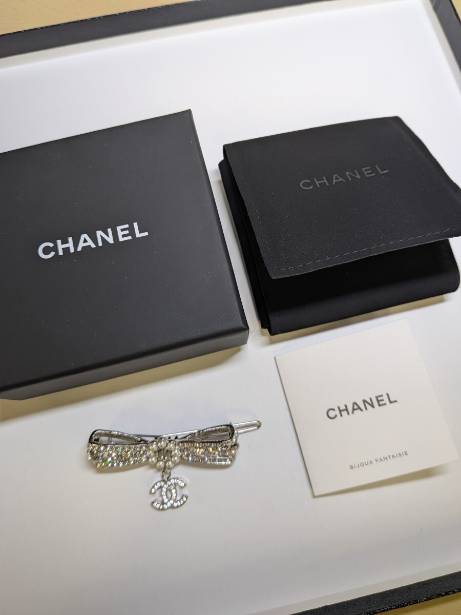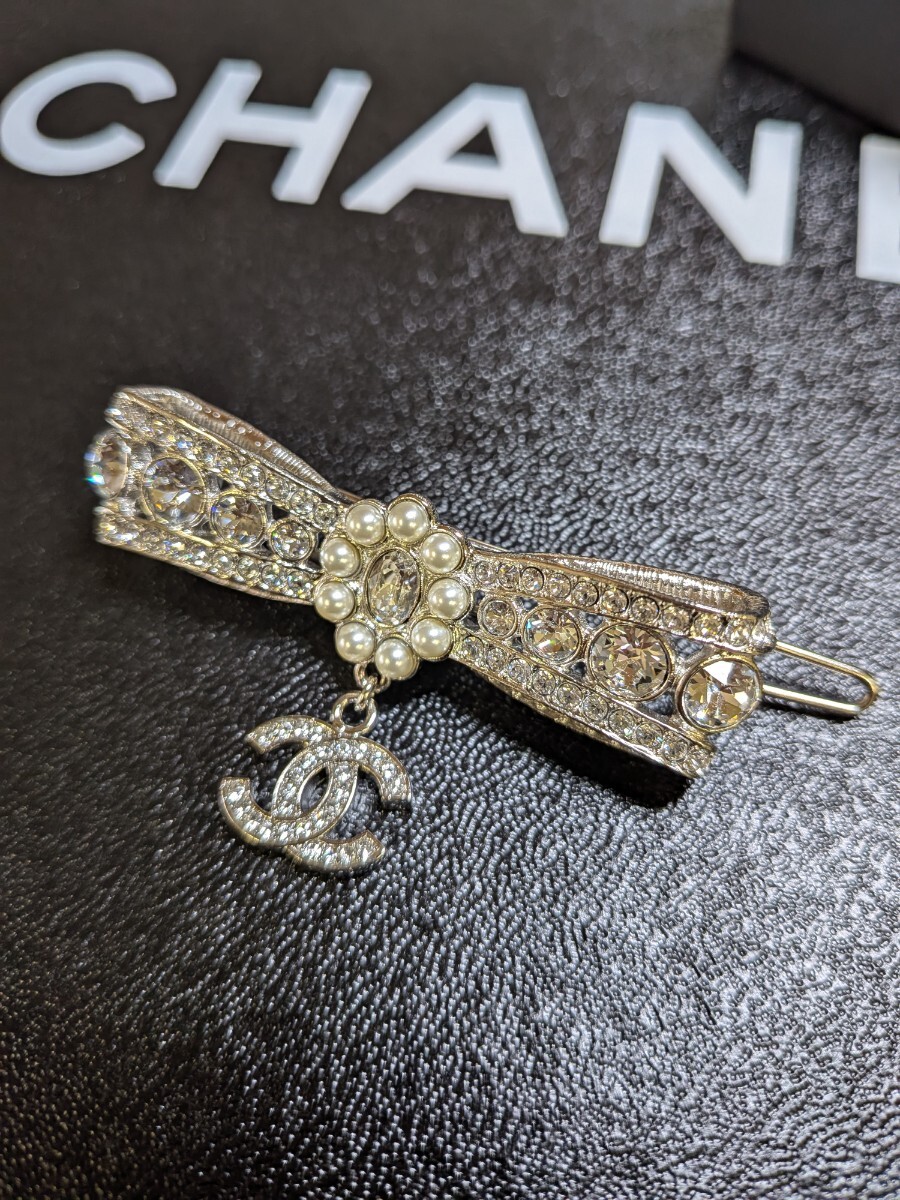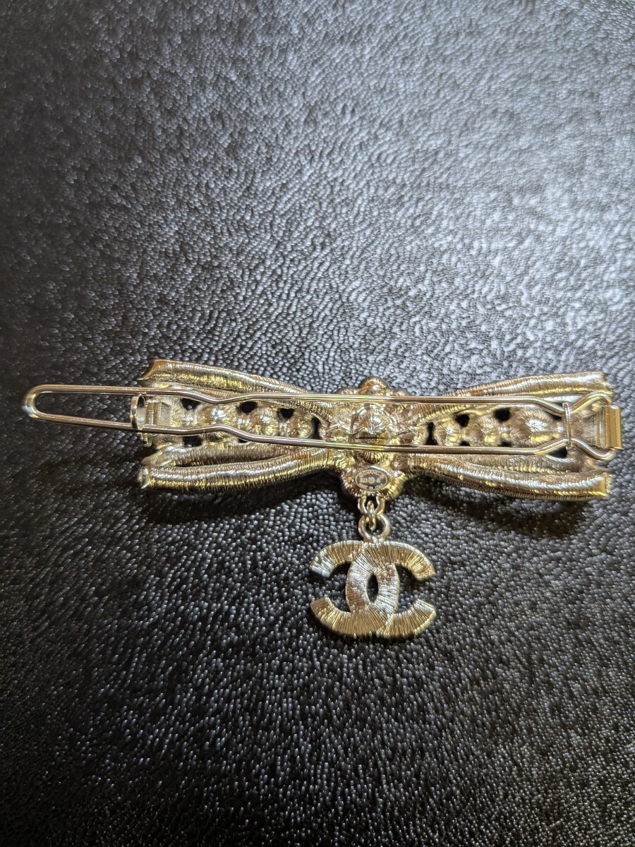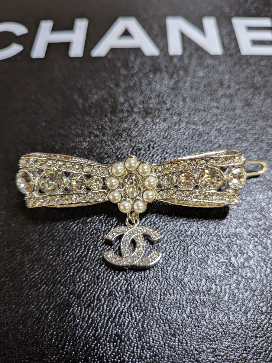 CHANEL シャネル リボンモチーフ フェイクパール クリスタル ヘアアクセサリー