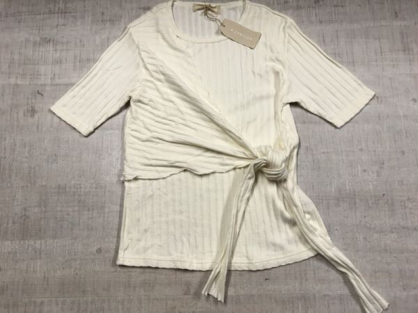 新品タグ付き アールジュビリー R JUBILEE リブ カシュクール リボン装飾 半袖 カットソー シャツ トップス レディース 日本製 F 生成り です。