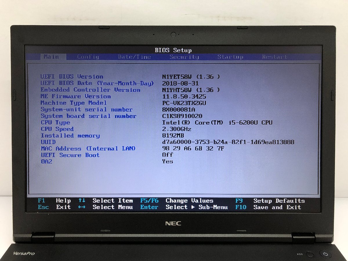 ジャンク/ NEC PC-VK23TXZGU Intel Core i5-6200U メモリ8.19GB ストレージ無し 【K21017】