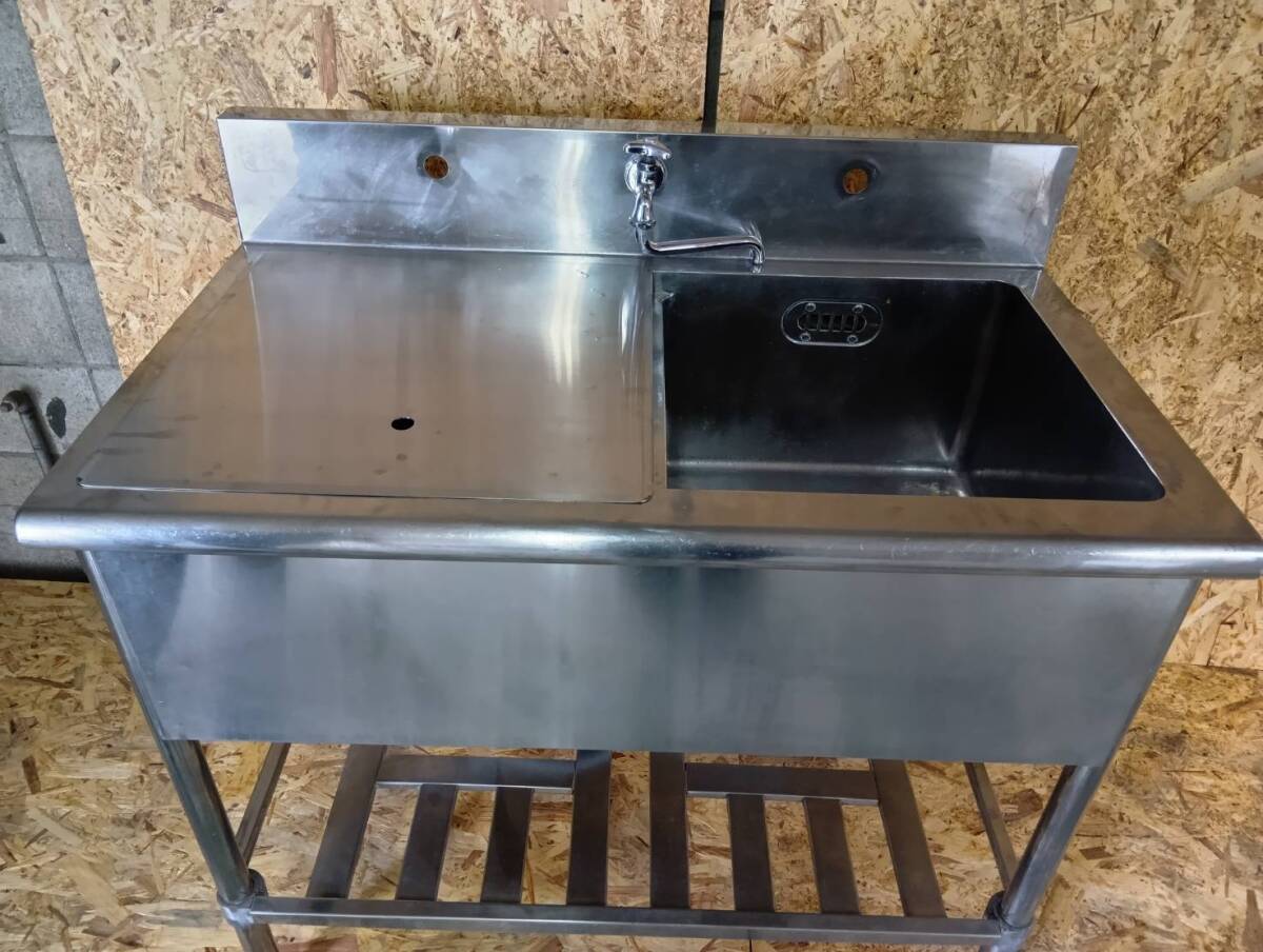 2槽シンク 幅1000奥行600高さ800 ステンレス製 厨房業務用中古