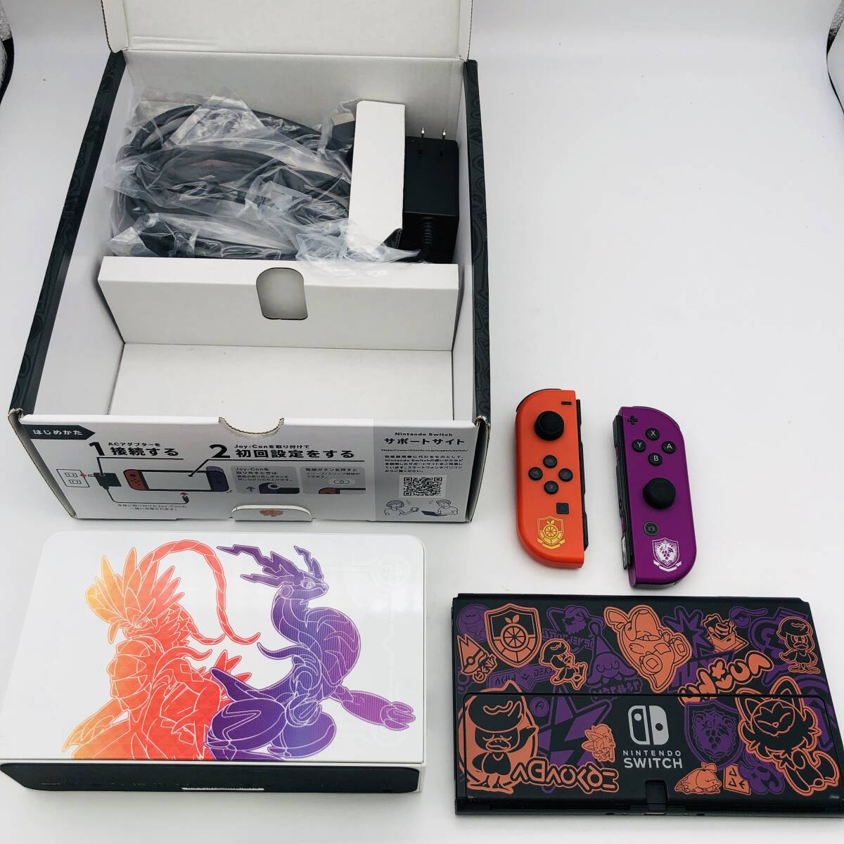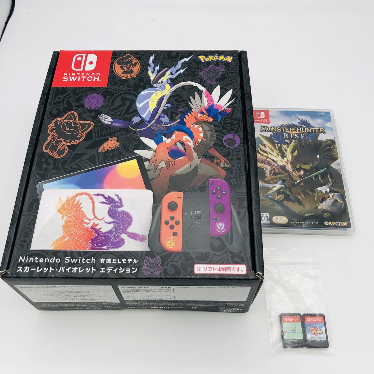 【SE-05】Nintendo Switich 有機ELモデル スカーレッド バイオレット 中古 スイッチ どうぶつの森 モンハン パワプロ ソフト付き