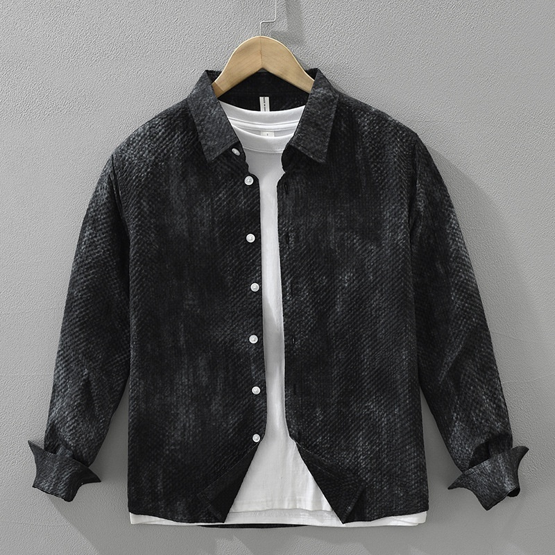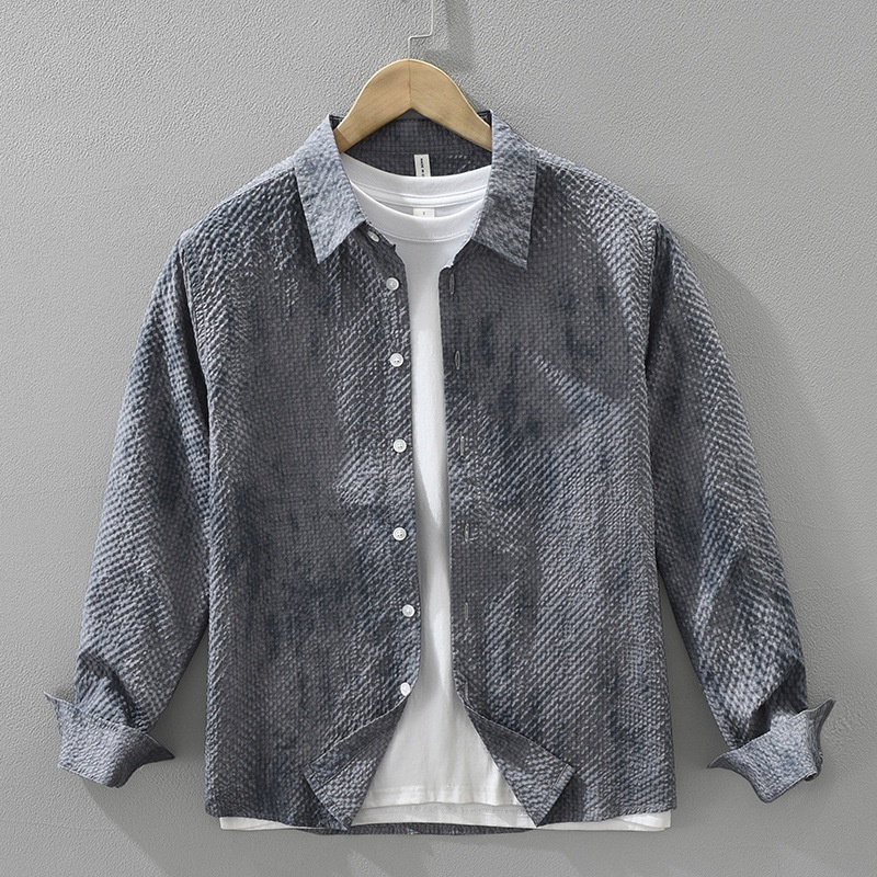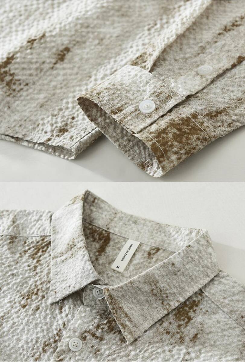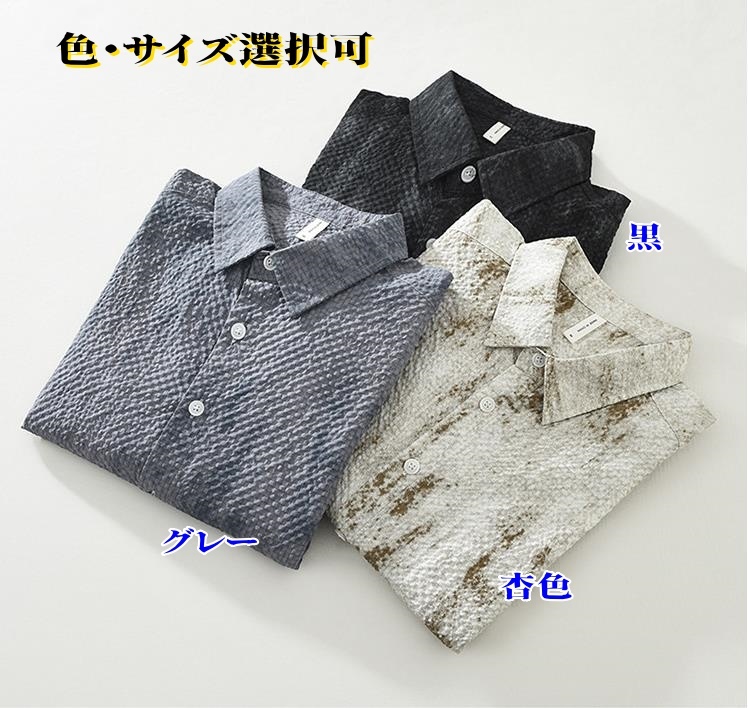 長袖シャツ 春夏服 シワ生地 トップス 新品★メンズ シンプル 開襟シャツ カジュアルシャツ【M7709】グレー 3XL
