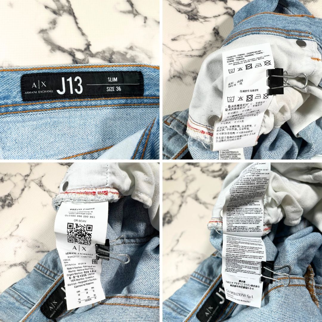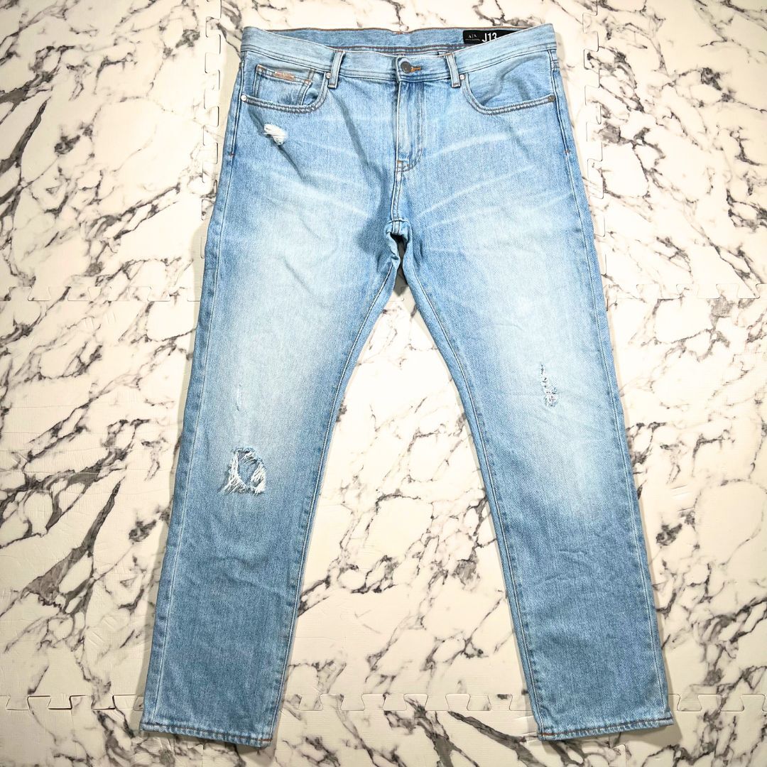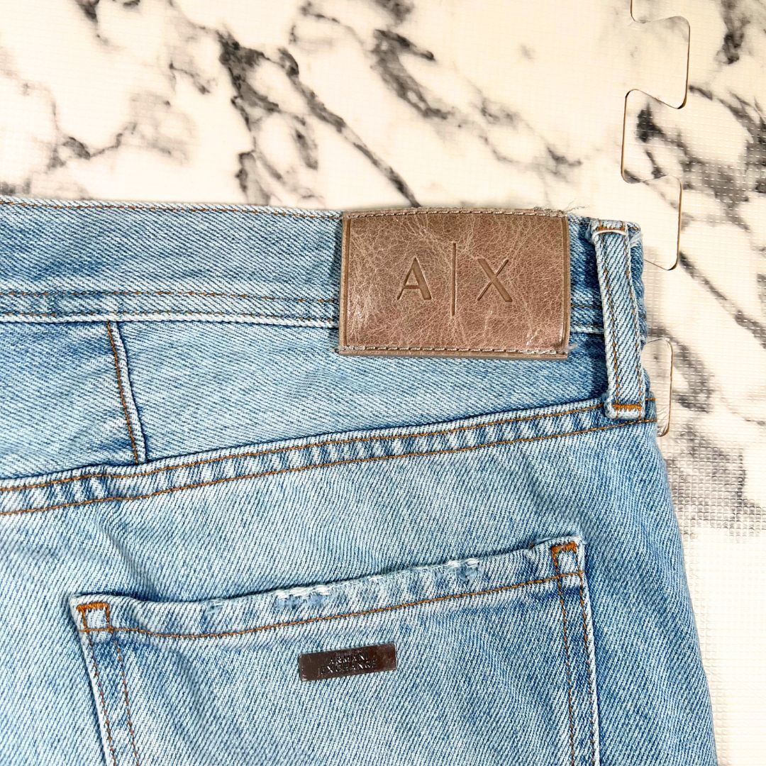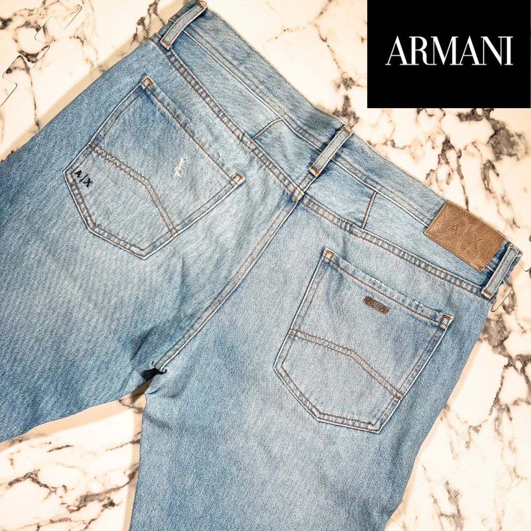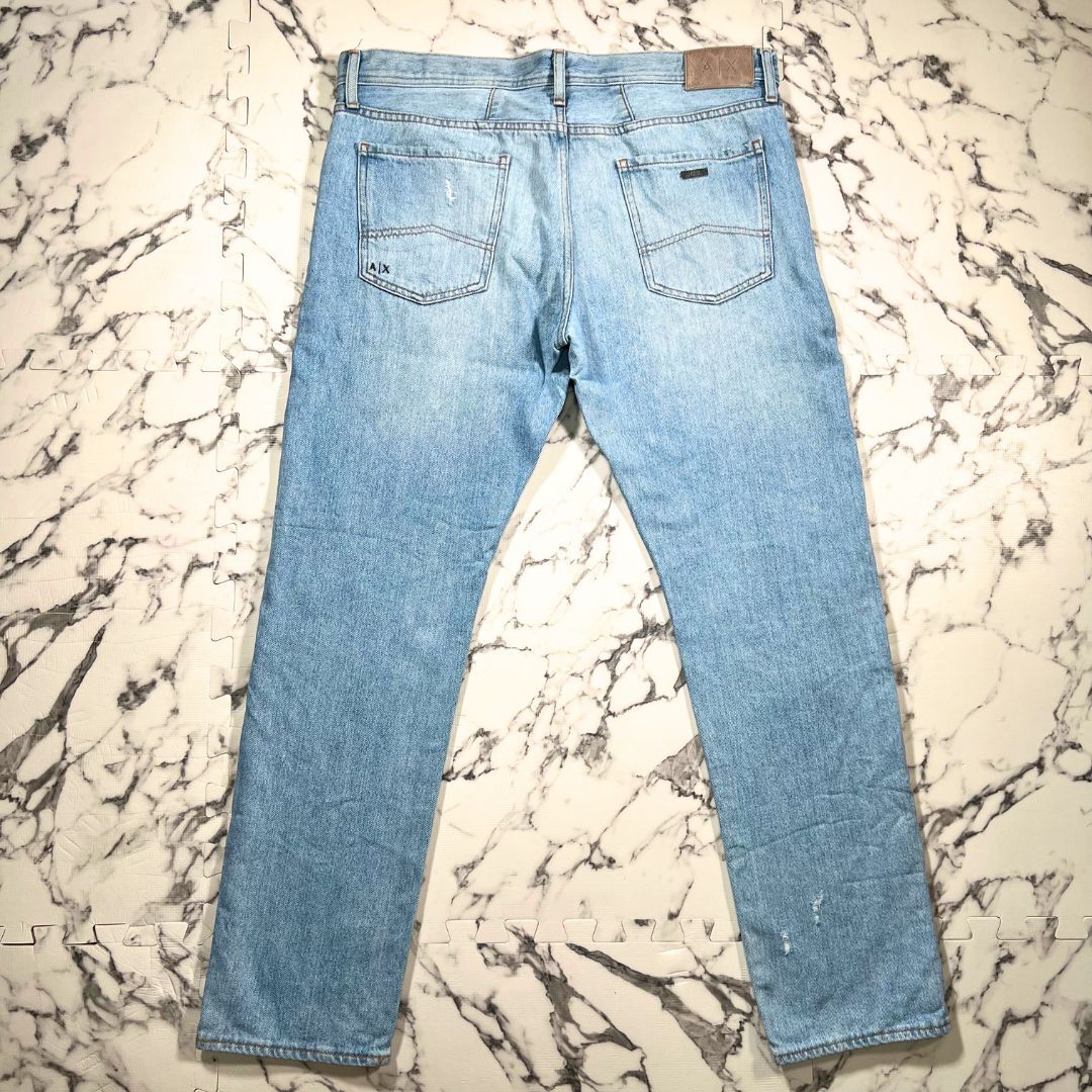 極美品/特大W36(2XL位)●アルマーニ エクスチェンジ デニム ジーンズ パンツ ARMANI EXCHANGE インディゴ ブルー 青 AX ロゴ刺繍 レザー