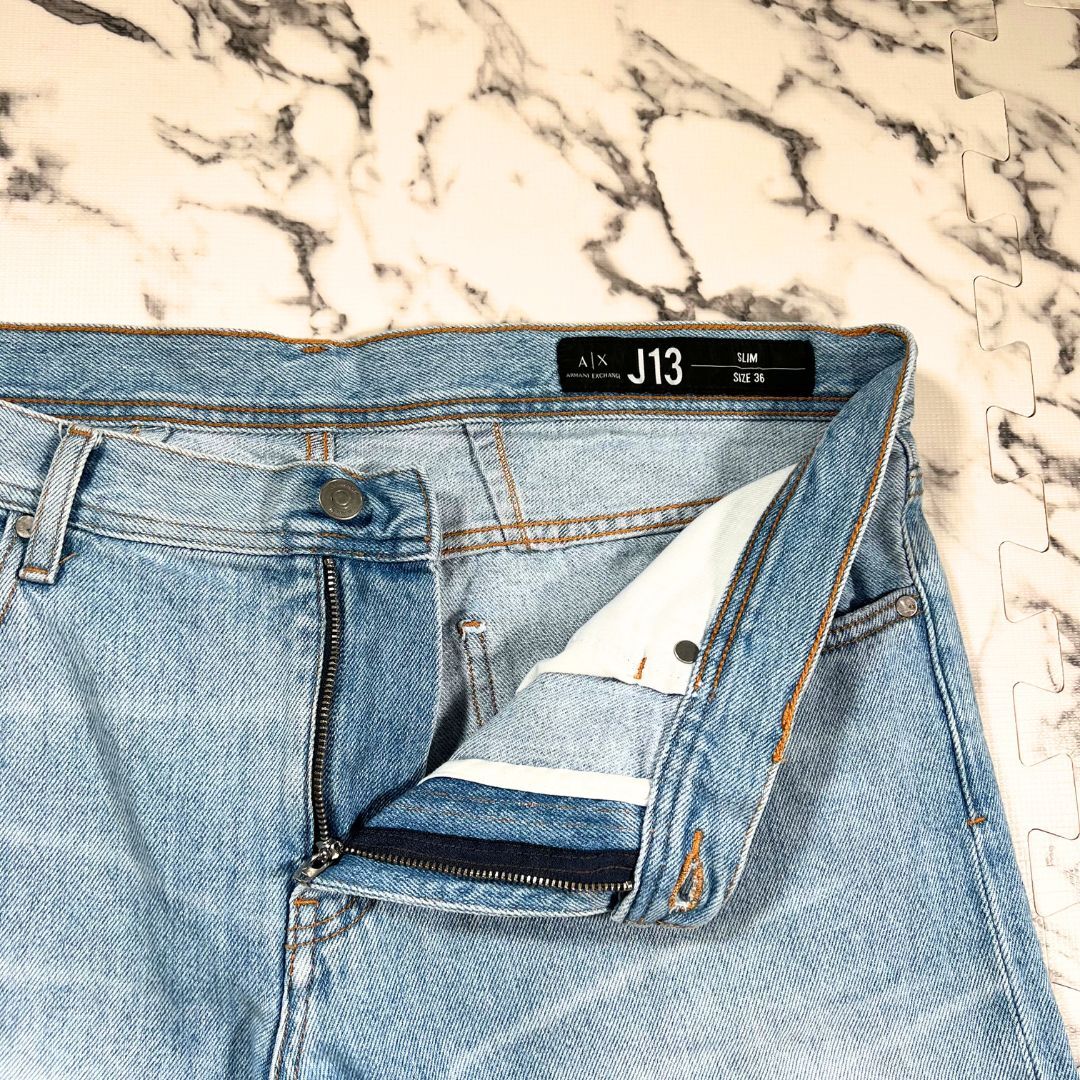 ARMANI EXCHANGE(アルマーニ エクスチェンジ)デニムパンツです。サイズは特大のW36で、2XL程度のゆとりあるサイズ感。インディゴブルーをベースにした王道のカラーリングで、洗練された大人のカジュアルスタイルを演出します。フロントはベーシックなジップアップ仕様で実用性も高く、バックポケットにはブランドを象徴するAXロゴの刺繍を配置。さらにウエスト部分にはレザーパッチが施され、高級感をさりげなくアピールしています。厚みのあるコットンデニム生地は耐久性に優れ、はき込むほどに体に馴染み、独特の風合いを楽しめる一本。シルエットは程よくゆとりがあり、リラックスした穿き心地ながらも野暮ったさを感じさせず、幅広いコーディネートに対応できます。Tシャツやシャツ、スウェットなど様々なトップスと好相性で、カジュアルからきれいめまで活躍。スニーカーやブーツとも合わせやすく、シーズンを問わず重宝します。これから長くご愛用いただけます。存在感のあるサイズ感とブランドらしいディテールが光る、ワードローブに加えて損のない一本です。