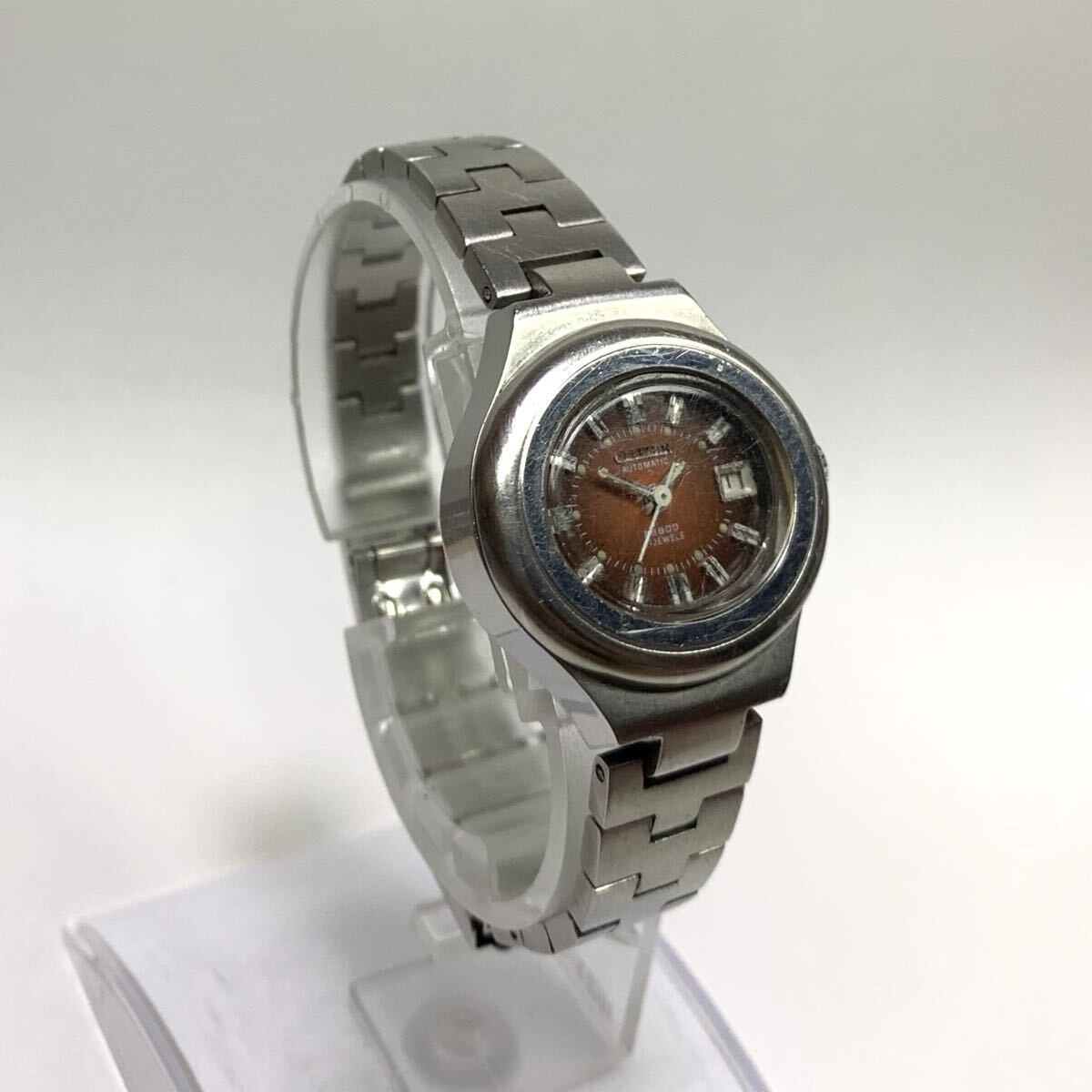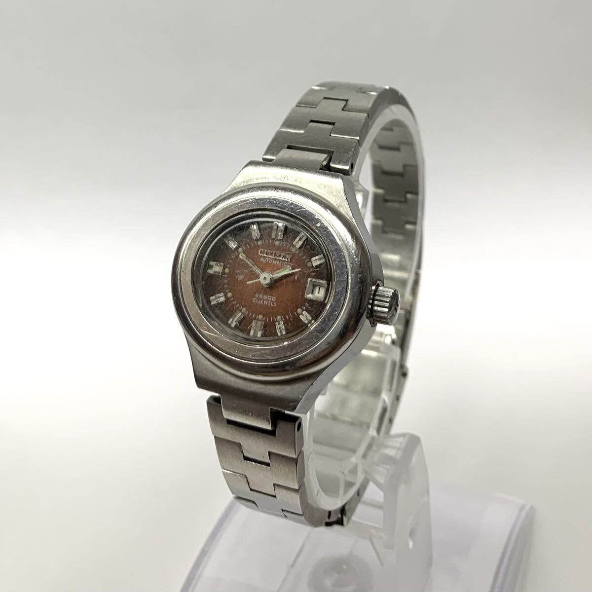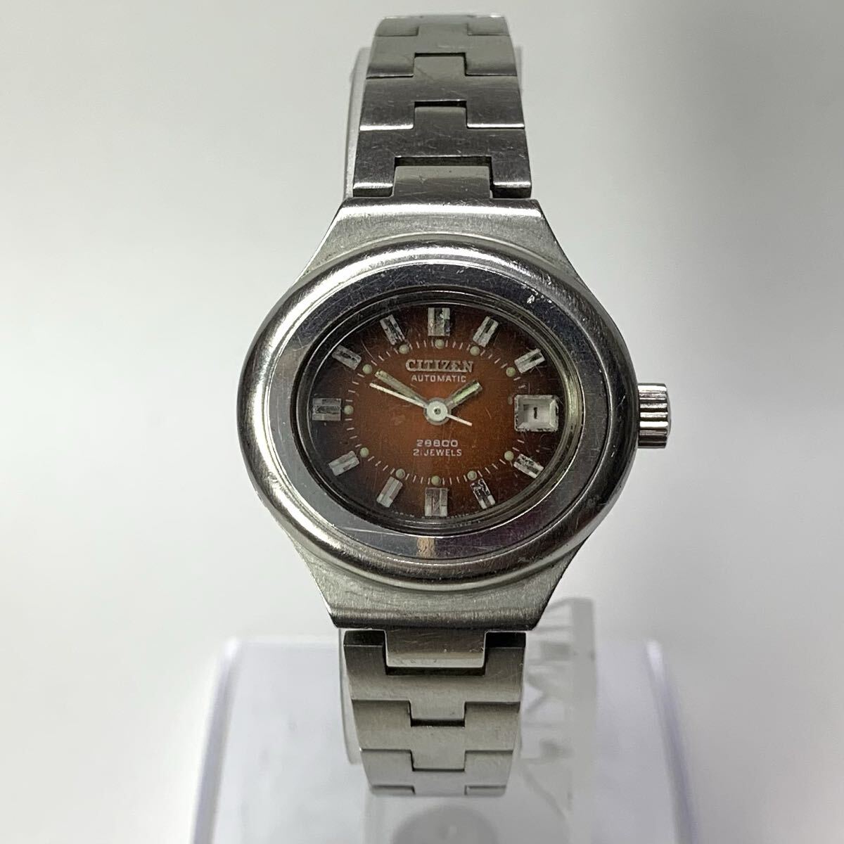 【稼働品】 CITIZEN シチズン 28800 4-690699 21石 レディース 腕時計 自動巻き デイト ブラウン文字盤 シルバー