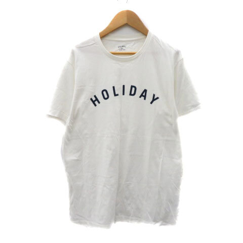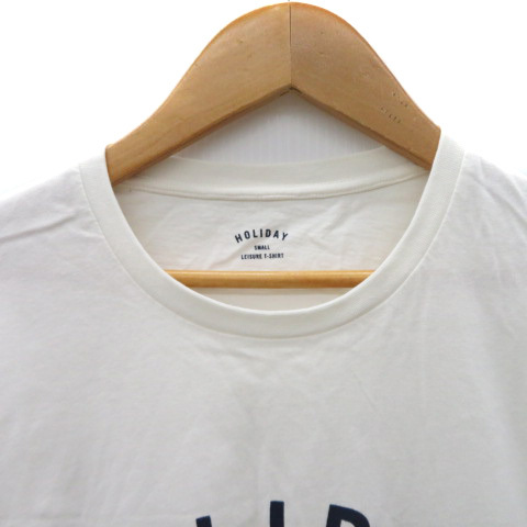 ホリデイ holiday Tシャツ カットソー 半袖 プリント S オフホワイト 紺 ネイビー /YK27 レディース