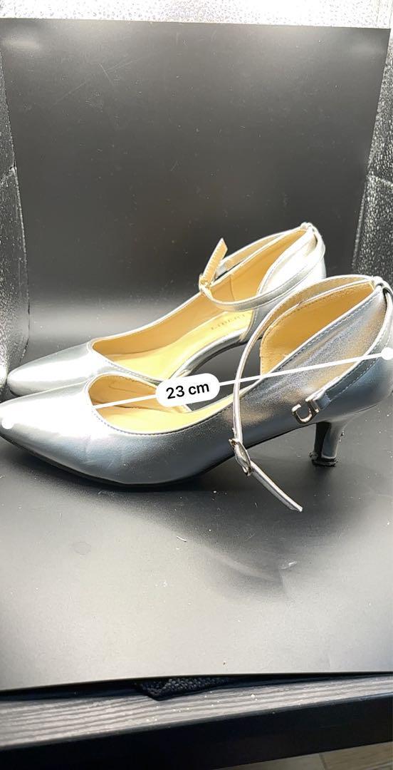 シルバーのハイヒールパンプス、Lサイズ、LIBERTYDOLL製。