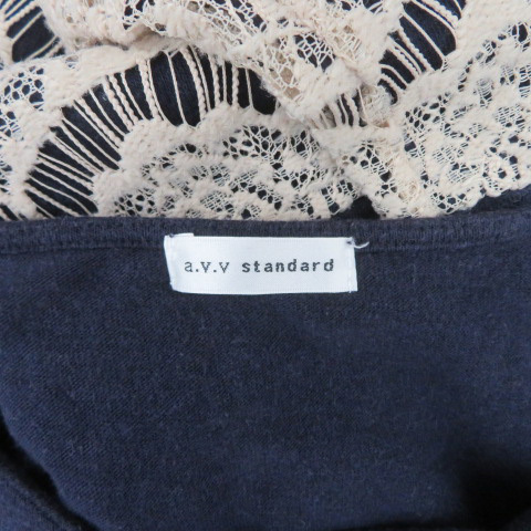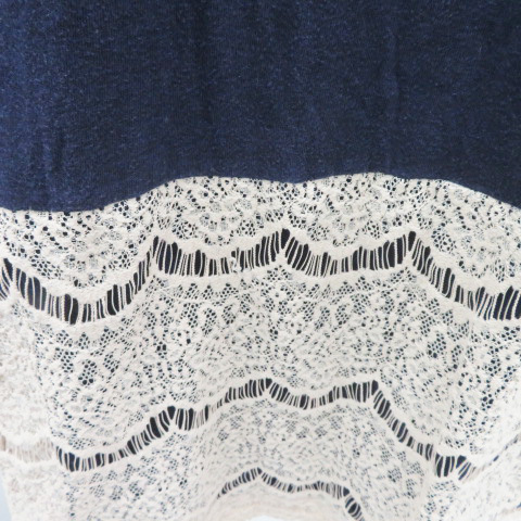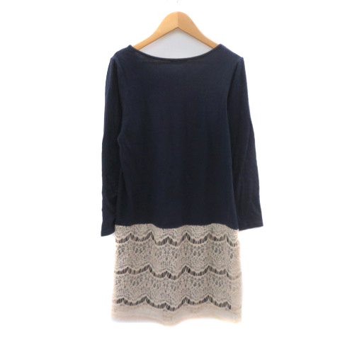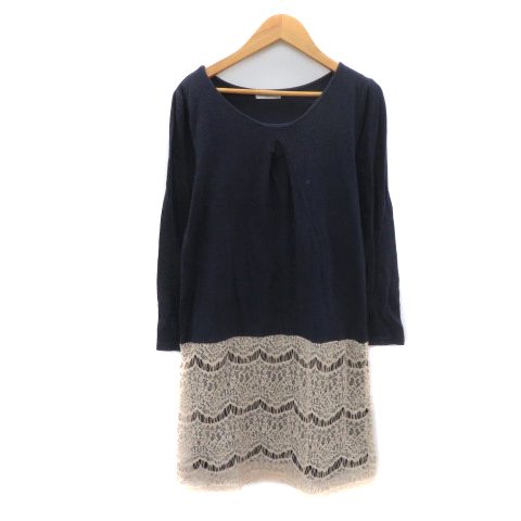 アー・ヴェ・ヴェスタンダード ミッシェルクラン ワンピース ミニ丈 長袖 切替 レース M 紺 ネイビー アイボリー /YK27 レディース
