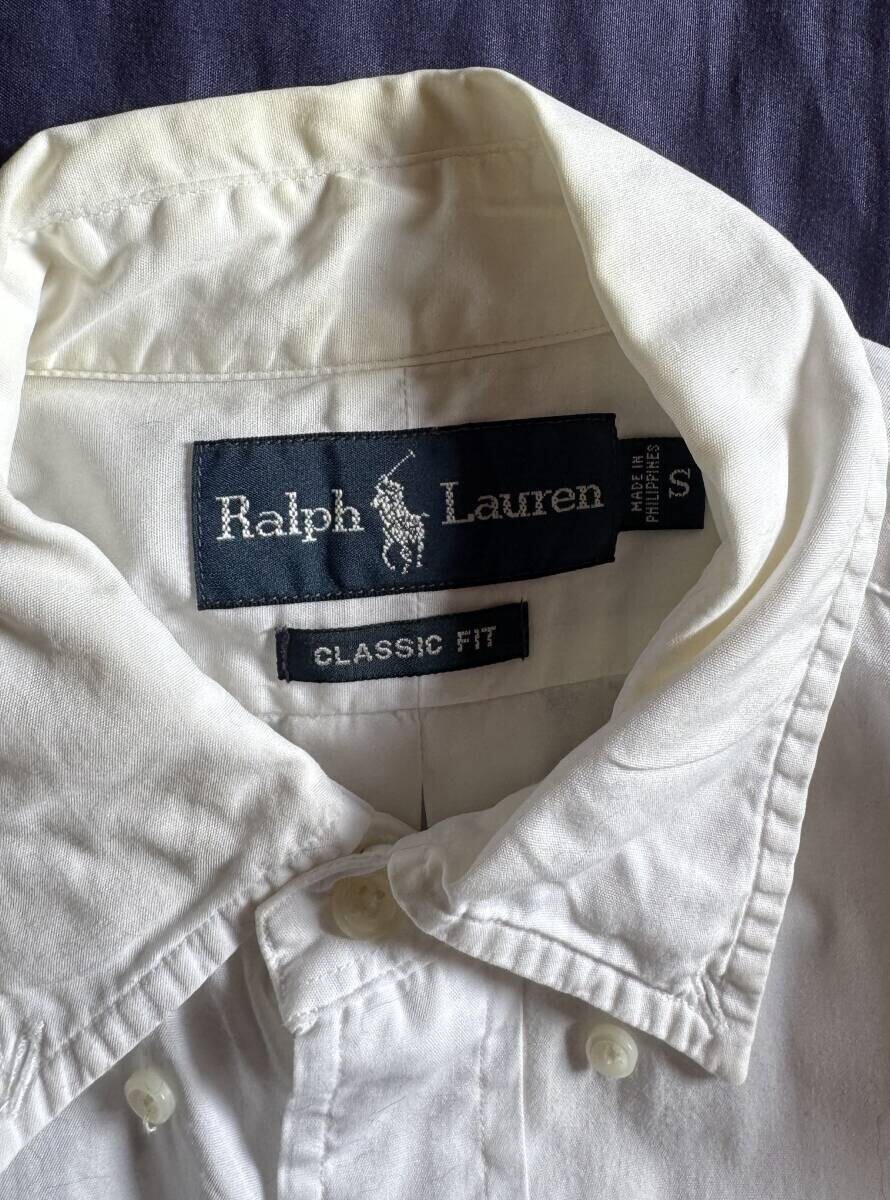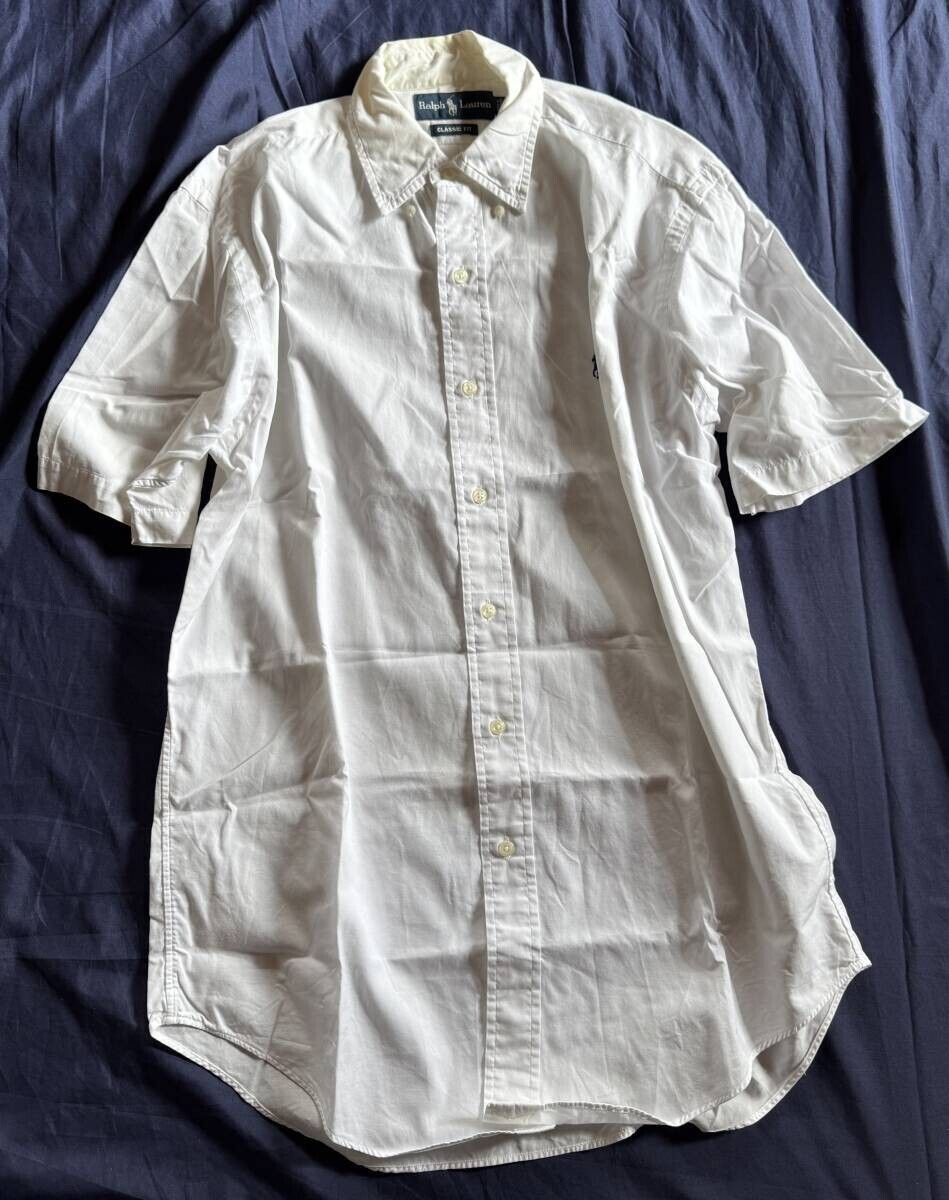 ラルフローレン 半袖 ブランド シャツ メンズ 90s ワンポイントロゴ オックスフォード ロング丈 コットン ボタンダウン 白 S