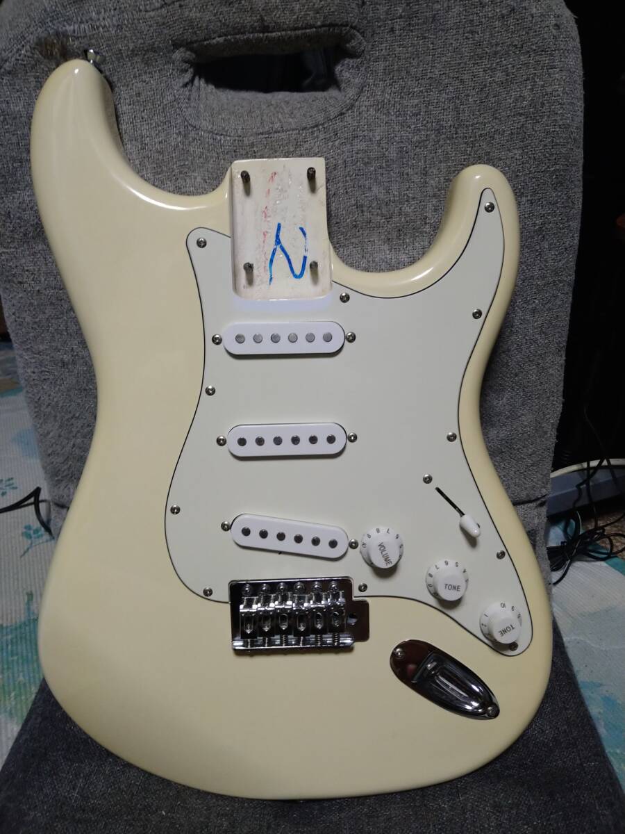 コンポーネント用に作ったボディに、ネックを合わせて、カフェにインテリア用として貸出していたストラトキャスターのボディです。