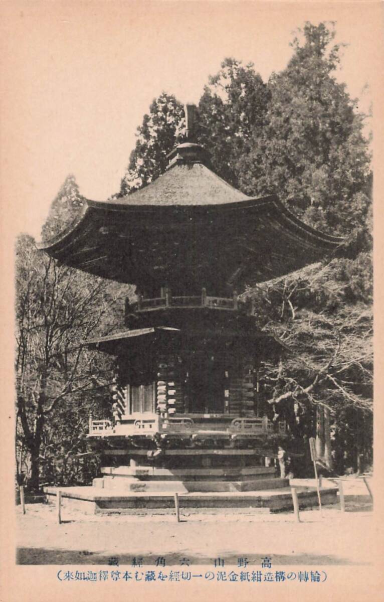 【絵葉書H】高野山 六角経蔵(輪転の構造 紺紙金泥の一切経を蔵む本尊釈迦如来)