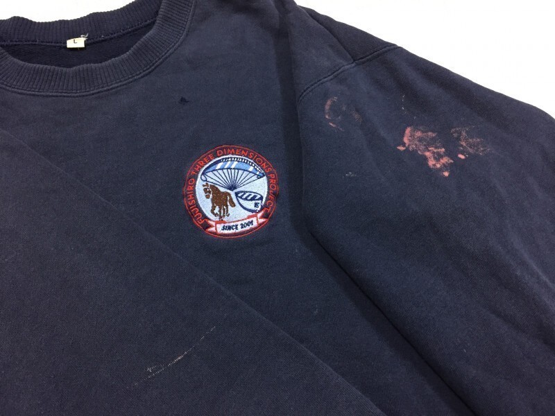 FUJISHIRO THREE DIMENSIONS PROJECT ロゴ刺繍 オールド レトロ 古着 スウェット トレーナー メンズ コットン100% L 紺 です。