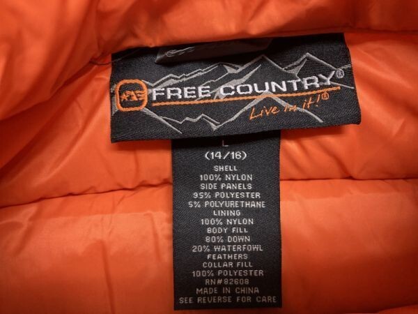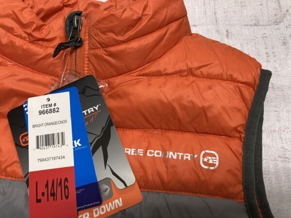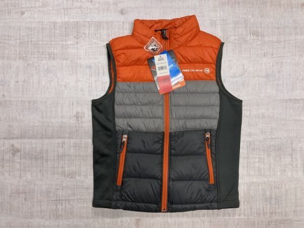 訳あり新品 FREE COUNTRY フリーカントリー ハイテク 配色切替 マルチカラー アウトドア ハイネック ダウン ベスト キッズ14/16 です。