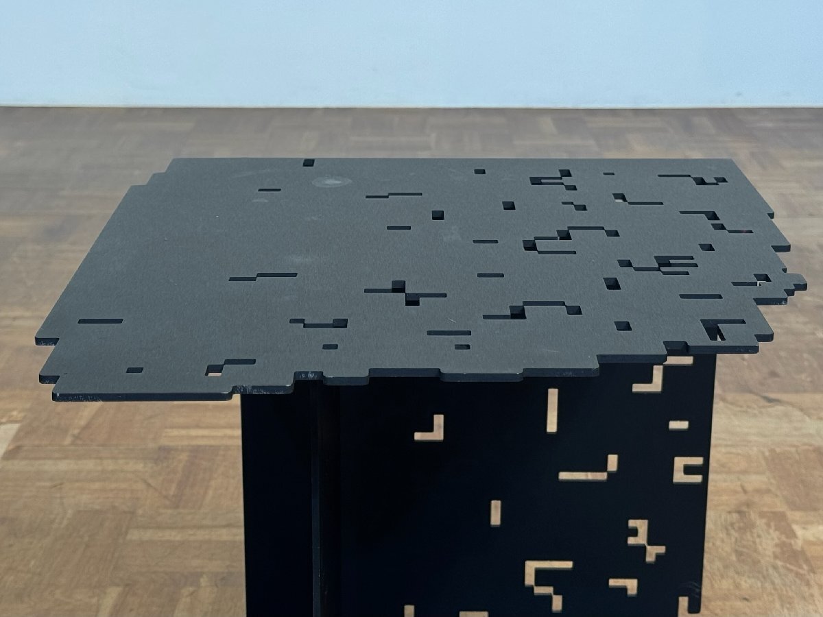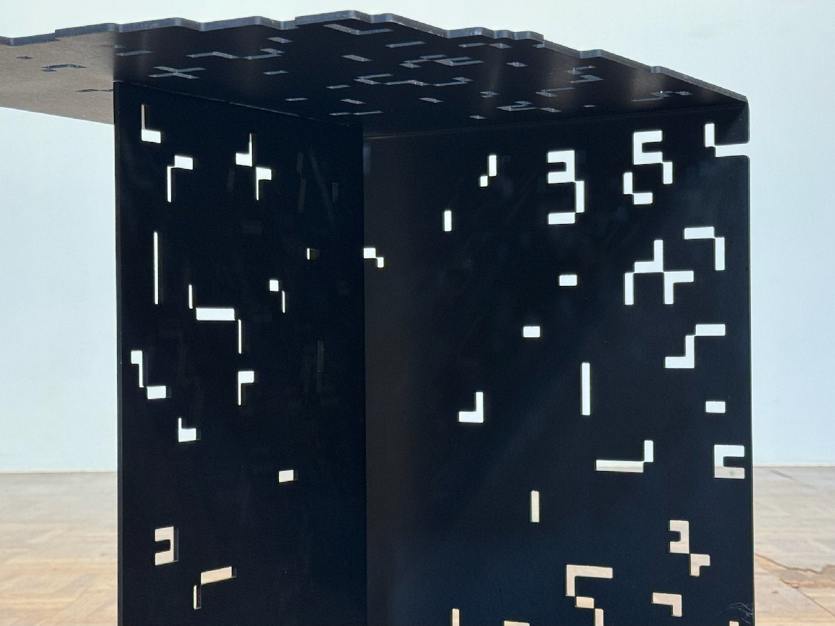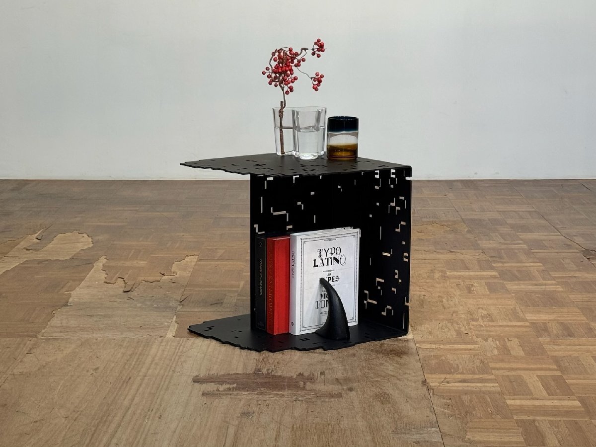コンピュータ言語のようにも古代文明の楔形文字や象形文字にも見える独特な紋様を、強力噴射した水力によりスチール材さえカットしてしまう最先端技術を駆使したウォータードリル製法で造形した、新旧双方のデザインモチーフを想起させる「Gig it=ディグイット(掘り起こす)」と「Digitable=デジタル化可能な」とのネーミングで洒脱にデコレートした、細やかなデザインに最高峰の工学技術を惜しみなく注ぎ込んだ名作サイドテーブル。B&B Italia より。
