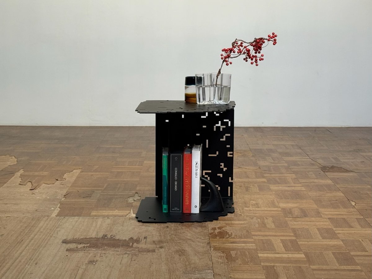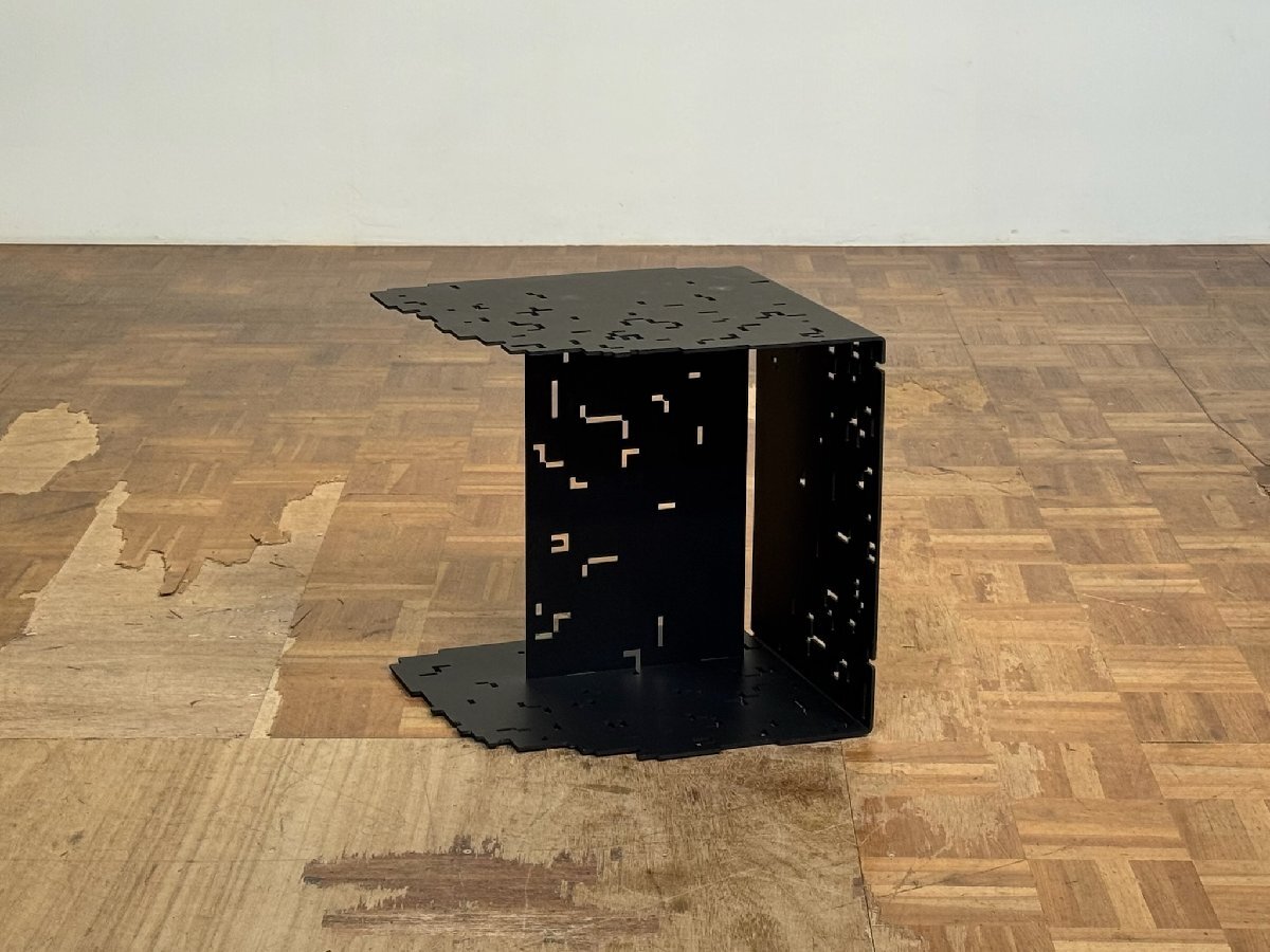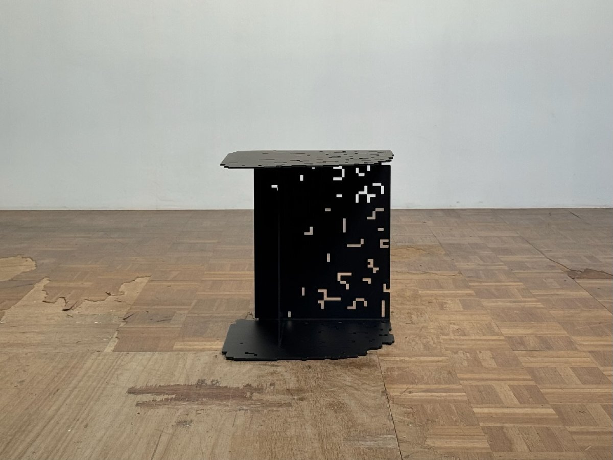 コンピュータ言語のようにも古代文明の楔形文字や象形文字にも見える独特な紋様を、強力噴射した水力によりスチール材さえカットしてしまう最先端技術を駆使したウォータードリル製法で造形した、新旧双方のデザインモチーフを想起させる「Gig it=ディグイット(掘り起こす)」と「Digitable=デジタル化可能な」とのネーミングで洒脱にデコレートした、細やかなデザインに最高峰の工学技術を惜しみなく注ぎ込んだ名作サイドテーブル。B&B Italia より。