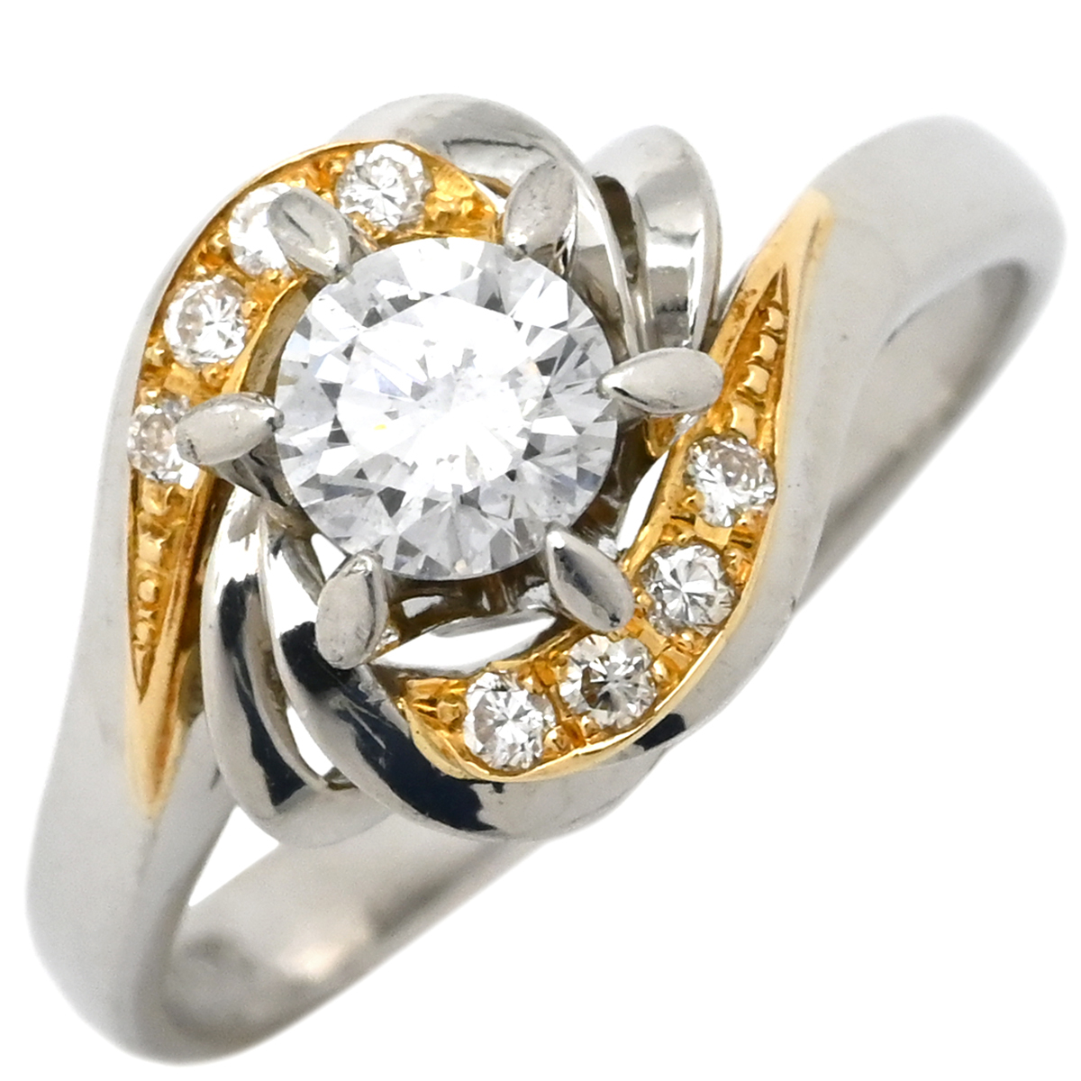 ノンブランド NON BRAND リング 指輪 Pt900 K18YG ダイヤモンド プラチナシルバーXイエローゴールドコンビリング 10.5号 レディース定番 人気 美品 中古 | |