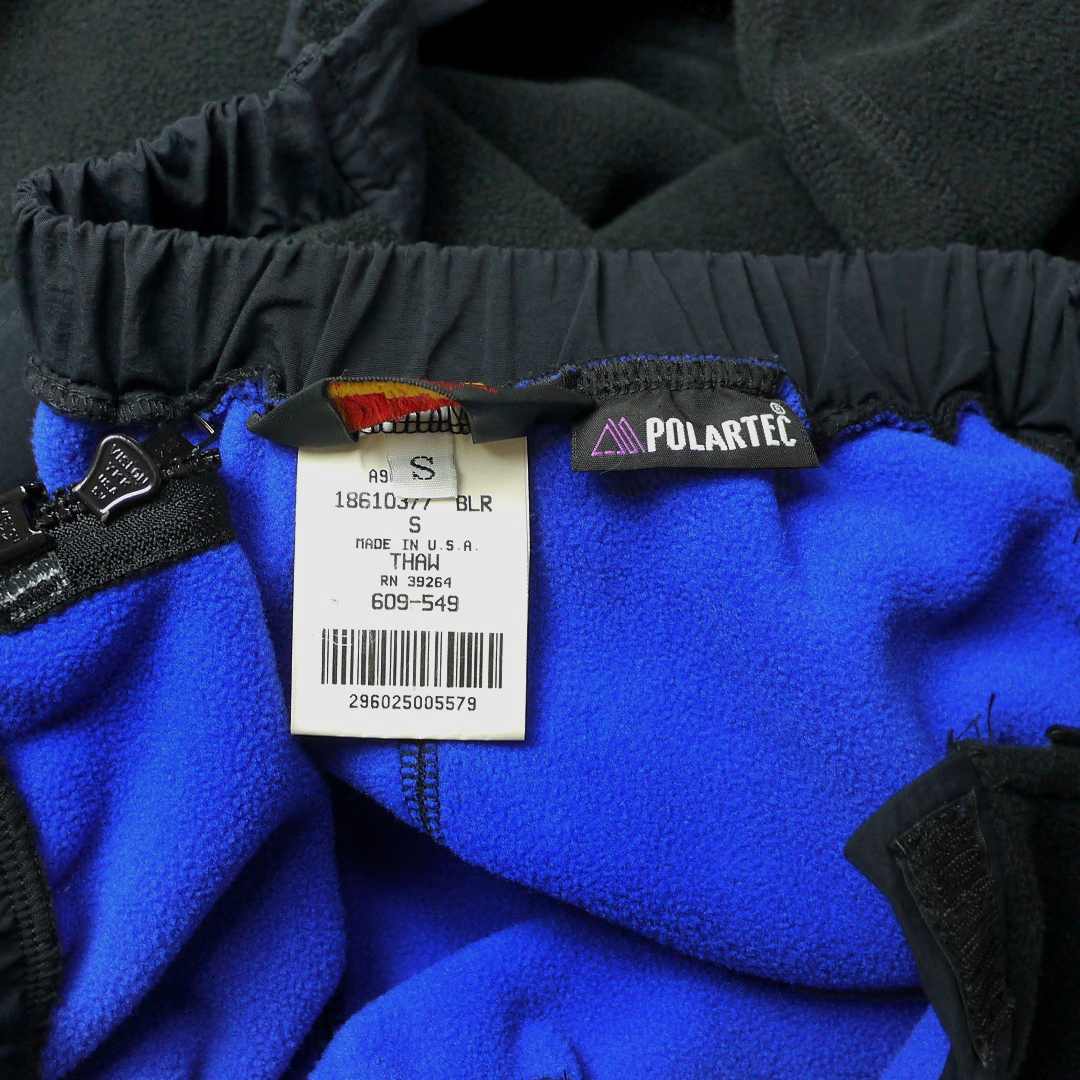 ■ブランド 90s、REI、MADE IN USA、VISLON YKK USA ZIP ■カラー 黒、青 ■素材 100%POLYESTER、POLARTEC ■詳細 アメリカで購入したレイのフリースパンツです。 90年代ごろの旧タグでアメリカ製、生地は保温性のあるポーラテックフリースになります。ブラック×ブルーのコンビカラーもお洒落でイイ感じです。 ディテールはウェストドローコード&ゴム入り、各所ポケットなし、ジッパーは左右ダブルジップのみでフルオープンにすることが出来ます。 オーバーパンツのような?つくりですが、スキニーのように結構細めのテーパードシルエットなのでナイロンパンツとあわせて防寒用インナーとして着用しておりました。 ■状態 フリース特有のわずかな毛玉、ジッパーレーンに多少の波打ち、ジッパー先端のクリアテープに多少の剥がれあり。(通常使用可能) 他、目立ちませんがモモにミリ単位の毛足の削れ&ピンホールの手縫い補修あとあり。 着用に問題あるダメージはなく良好です。 フリースもフカフカとしております。 ■サイズ 表記 S *実寸参考下さい ウェストはゴム入りなので結構伸びますが、写真の状態で34cm×2、 32cm-45cm(W25-W35)くらいまでは対応可能です。 股下 79cm 総丈 102cm 股上前 23cm 股上後 30cm 股下マチ 18cm ワタリ 34cm ヒップ 57cm *股下中央に縫目がありませんのでレングスやワタリはおおよその計測値になります。 裾幅は11cm(伸縮可能)、裾上10cmくらいで計測すると横幅17cmくらいです。 ■注意事項 状態は細かく確認しておりますが、傷や汚れの見落とし、実寸誤差、色味差異など生じる場合がございます。 不明な点がありましたら入札前にご質問下さい。 商品にあわせて洗濯やクリーニングメンテナンスを施しておりますが、ビンテージやアンティークなど中古品になりますので特性のご理解をお願いします。 |
