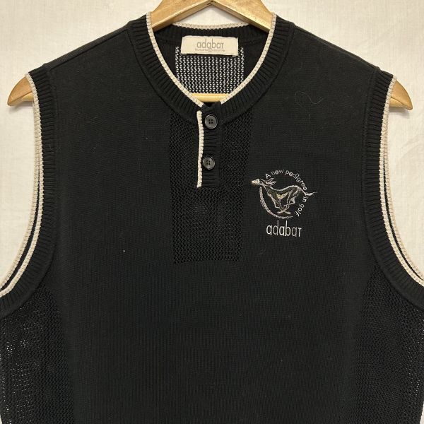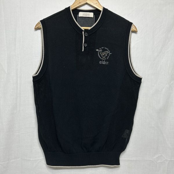 〇adabat アダバット ノー スリーブ ベスト ニット セーター GOLF ゴルフ スポーツ トレーニング ウェア 黒 ブラック
