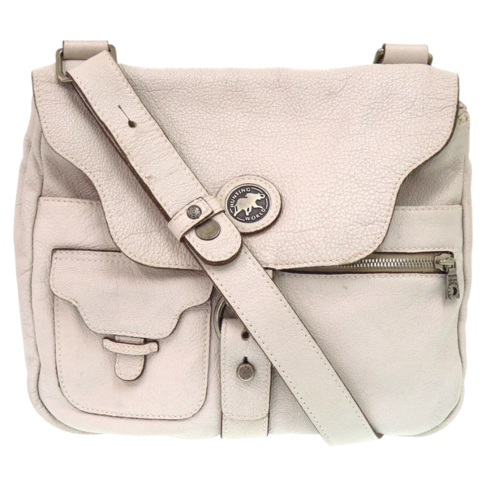 ハンティングワールド 071101 カーフ レザー アイボリー シルバー金具 白 ショルダーバッグ 0022 HUNTING WORLD