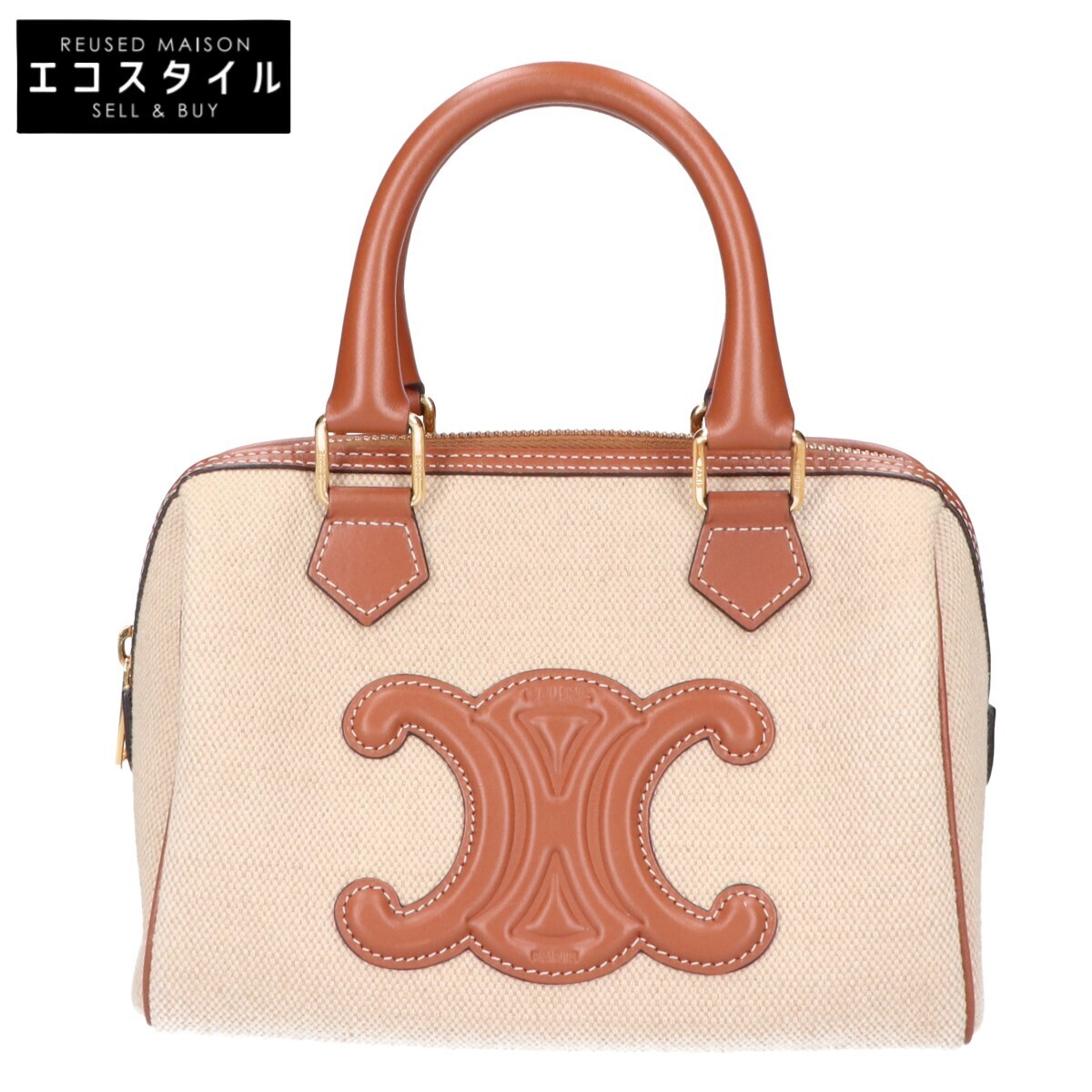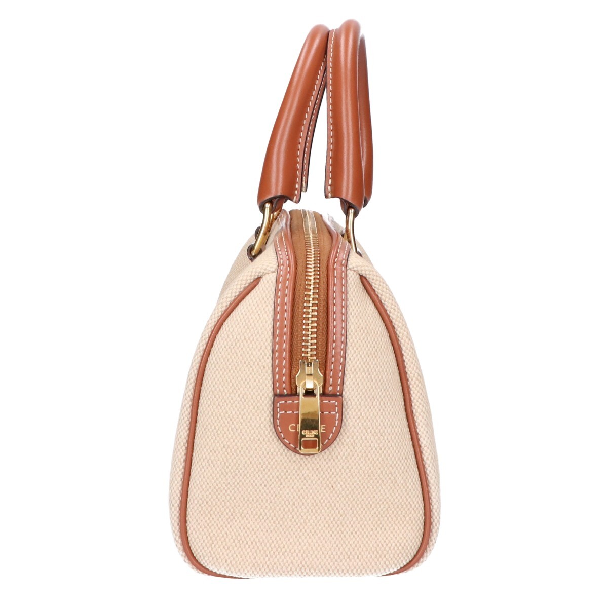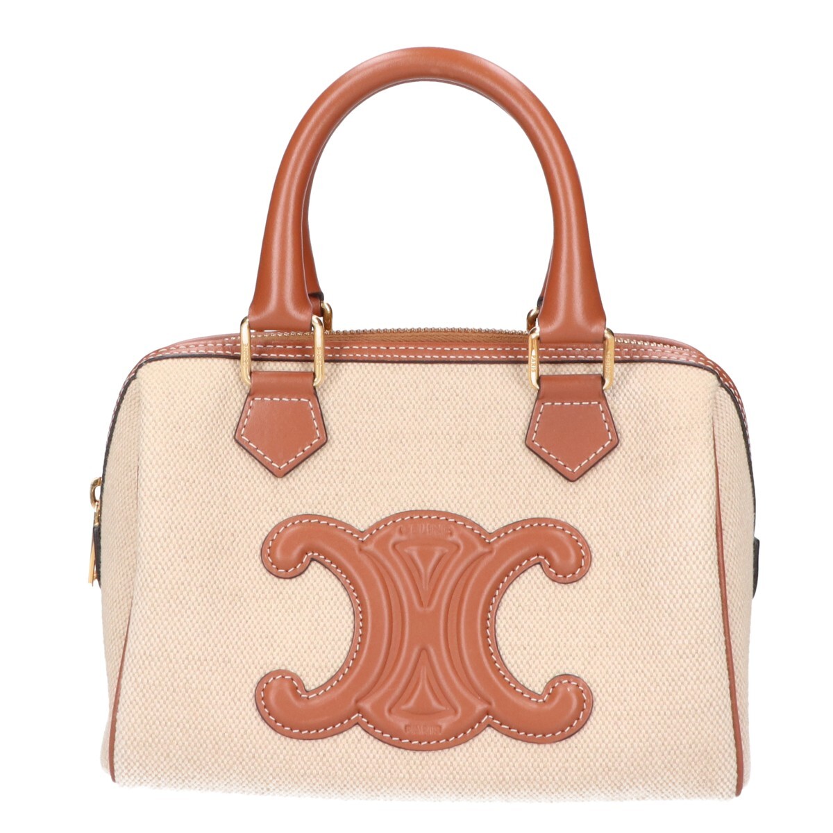 CELINE セリーヌ テキスタイルxカーフスキン トリオンフ キュイル スモールボストン 2WAY ショルダーバッグ タン レディース