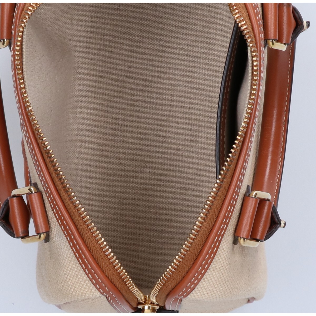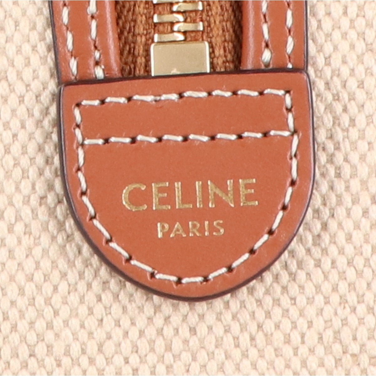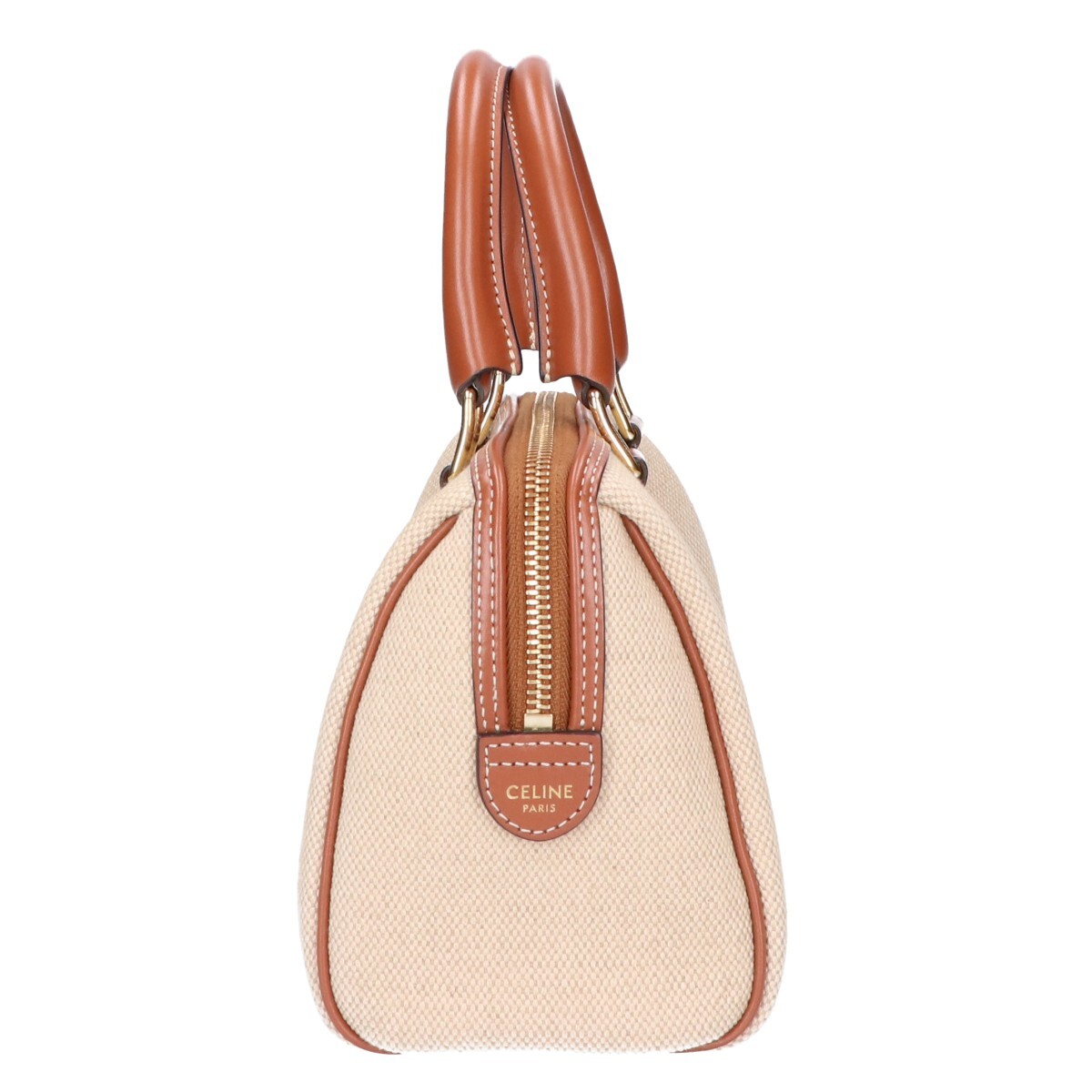 CELINE セリーヌ テキスタイルxカーフスキン トリオンフ キュイル スモールボストン 2WAY ショルダーバッグ タン レディース